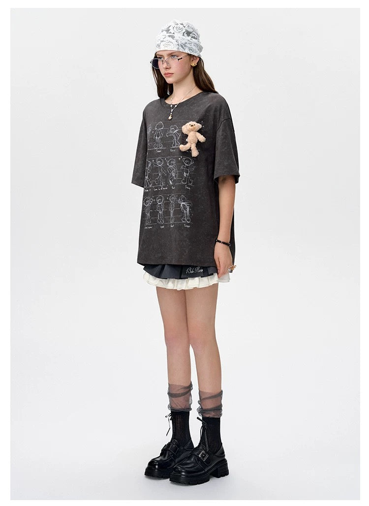 This sketch bear illustration T-shirt fuses artistic draft-style graphics with casual fashion. Each bear design is vivid and full of personality, making the shirt both cute and unique. Perfect for those who love creative and stylish everyday wear.