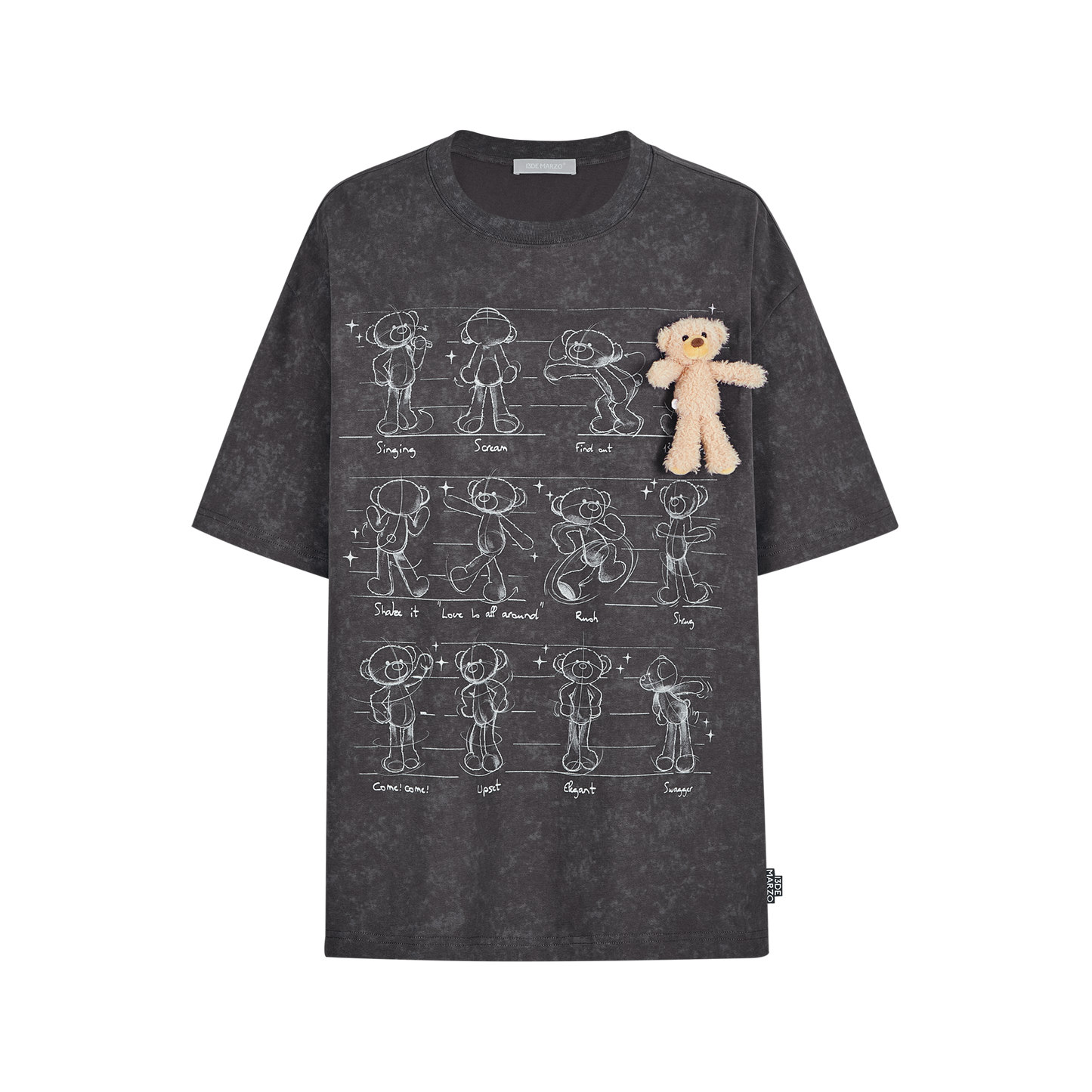 13DE MARZO Bear Movement Sketch T-shirt Dark Grey