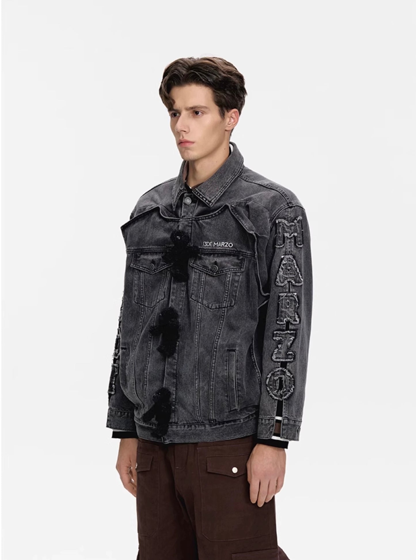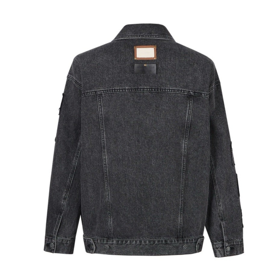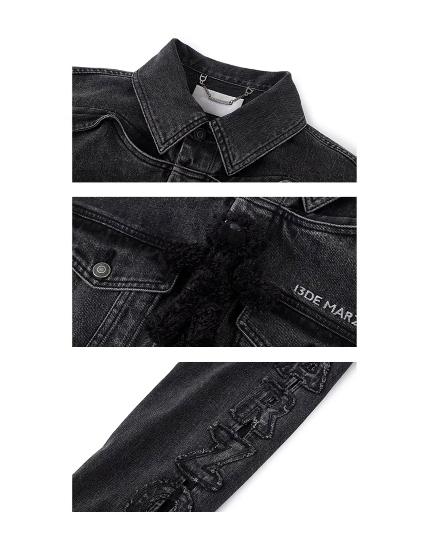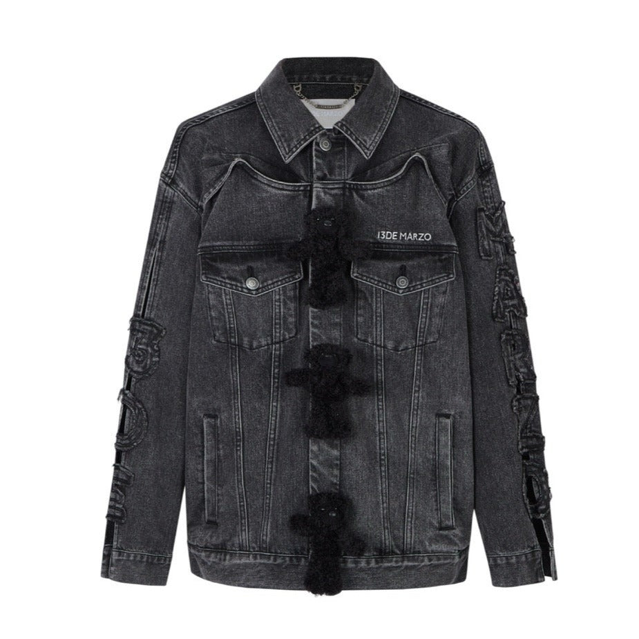 13DE MARZO Bear Side Hollow Denim Jacket Black