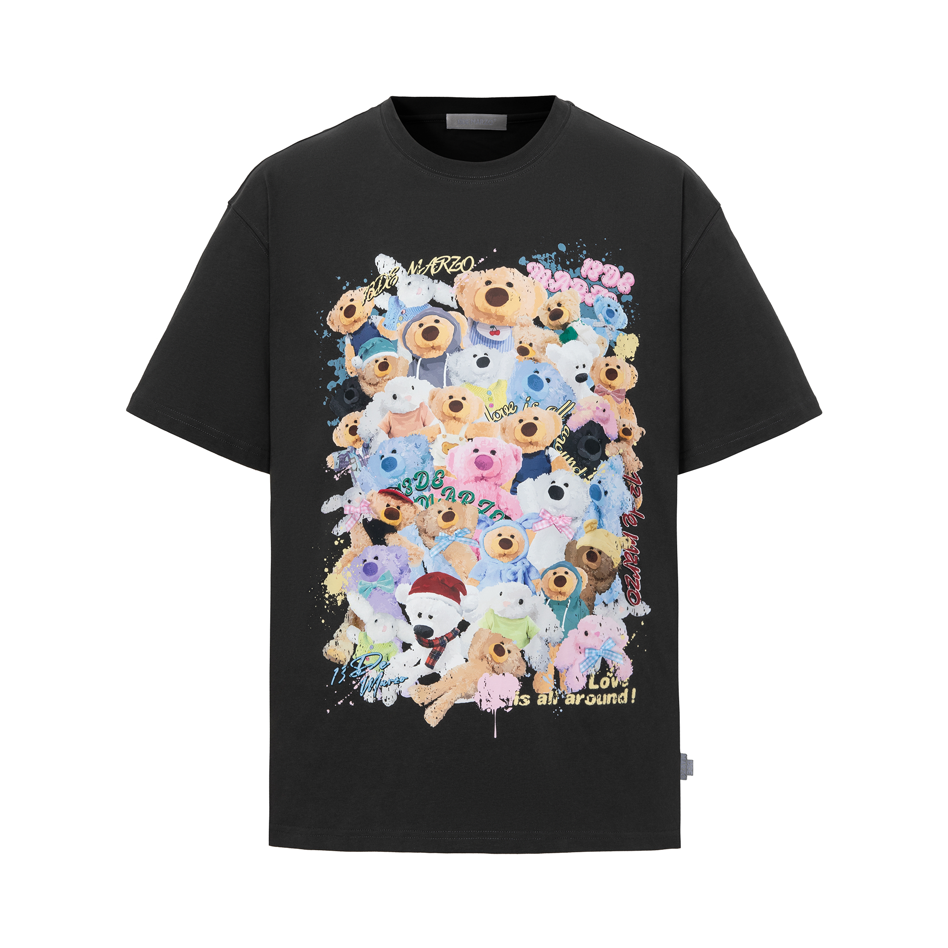 This classic loose-fit short sleeve tee features the brand’s iconic playful doll characters, each dressed uniquely with stylish hats, cozy scarves, and flashy shirts. Printed with a variety of patterns and texts, these characters look like they’re attending a lively party, blending cuteness with personality. Made from soft, pure cotton fabric, the relaxed fit ensures all-day comfort, while the charming prints make this tee a must-have fashion piece.