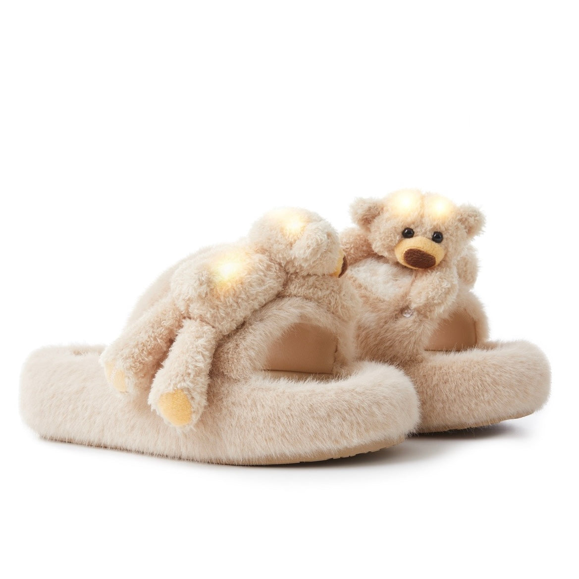 13DE MARZO Doozoo Glowing Fuzzy Slipper Khaki