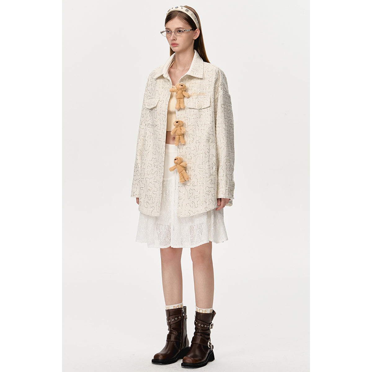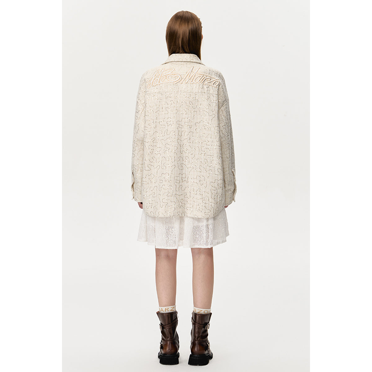 13DE MARZO Doozoo Shining Tweed Shirt Beige