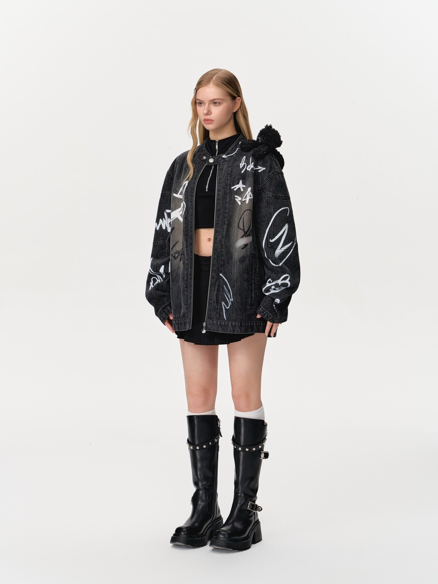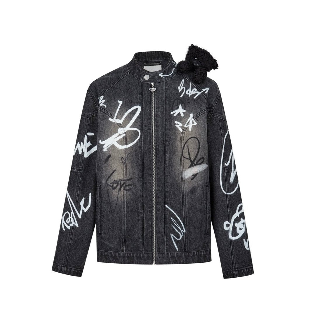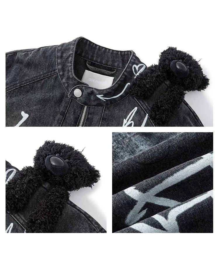 13De Marzo Graffiti Bear Racing Denim Jacket Black