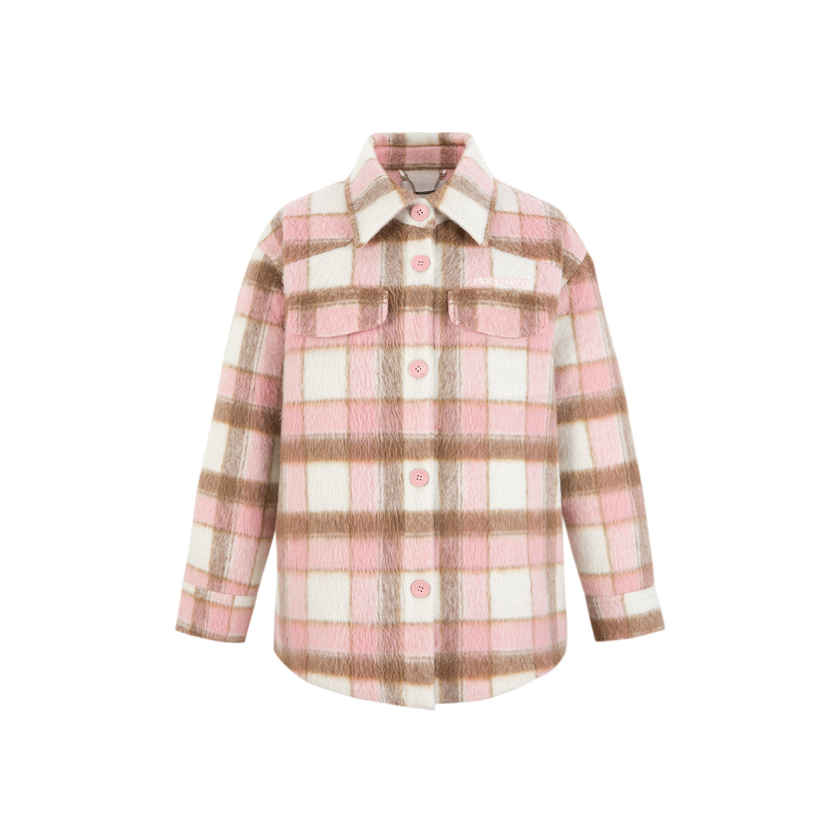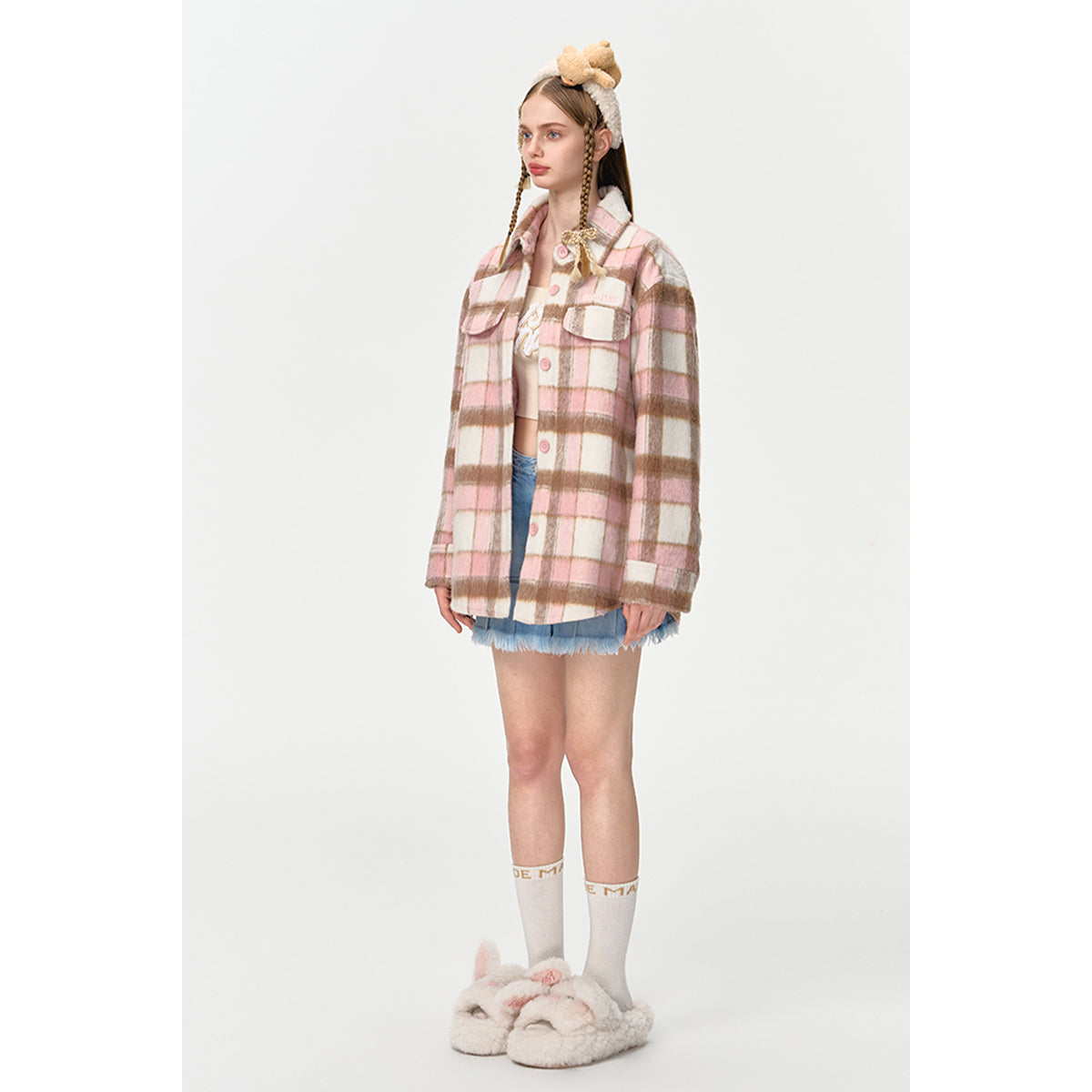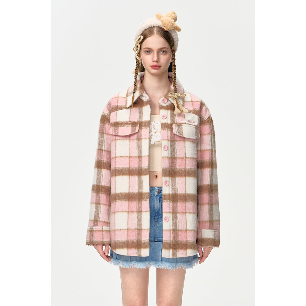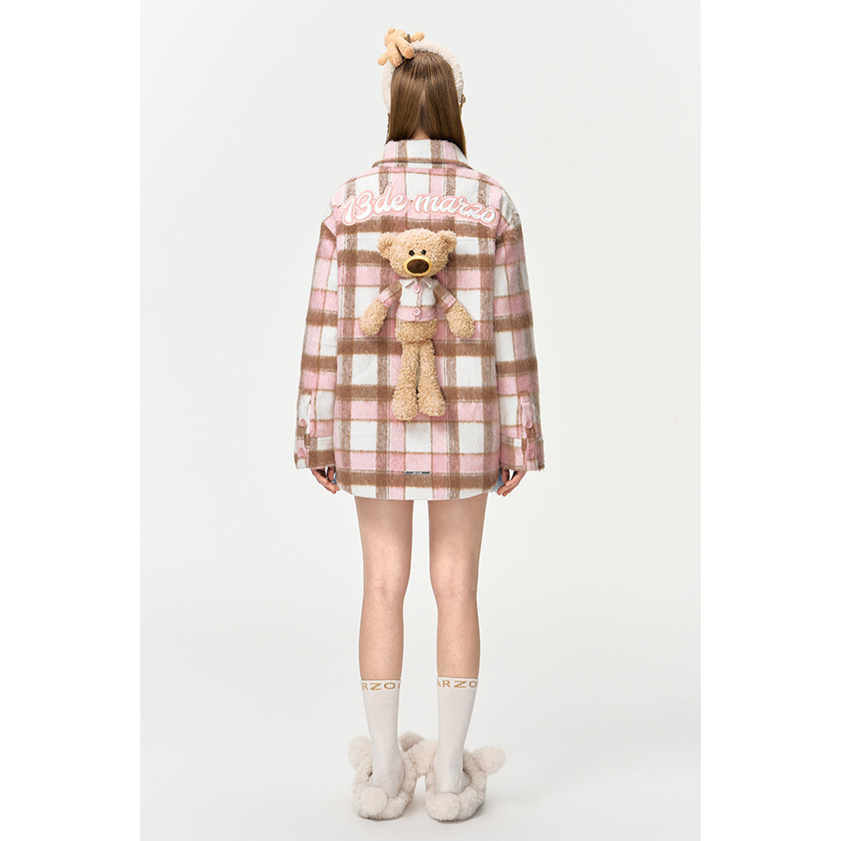 13De Marzo Bear Tweed Plaid Shirt Pink