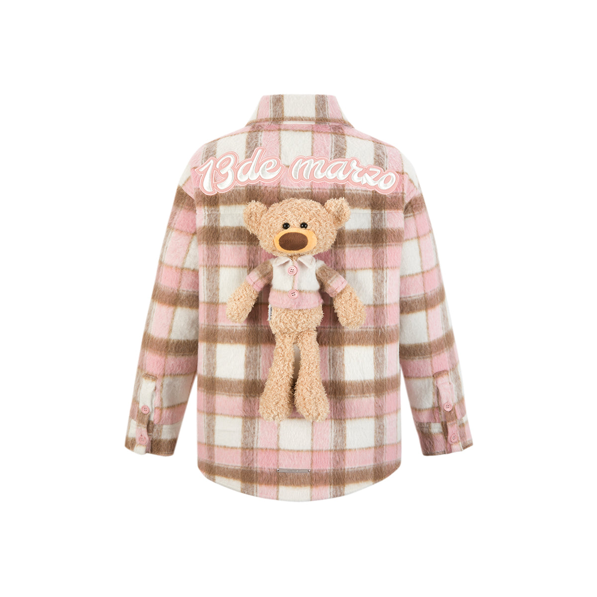 13DE MARZO Bear Tweed Plaid Shirt Pink