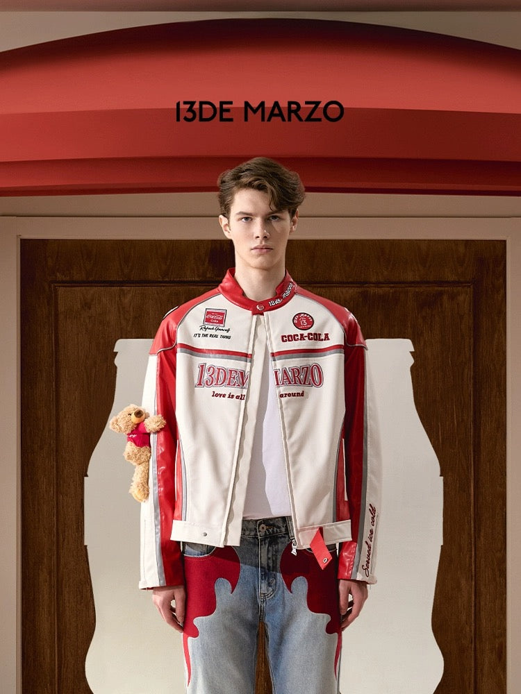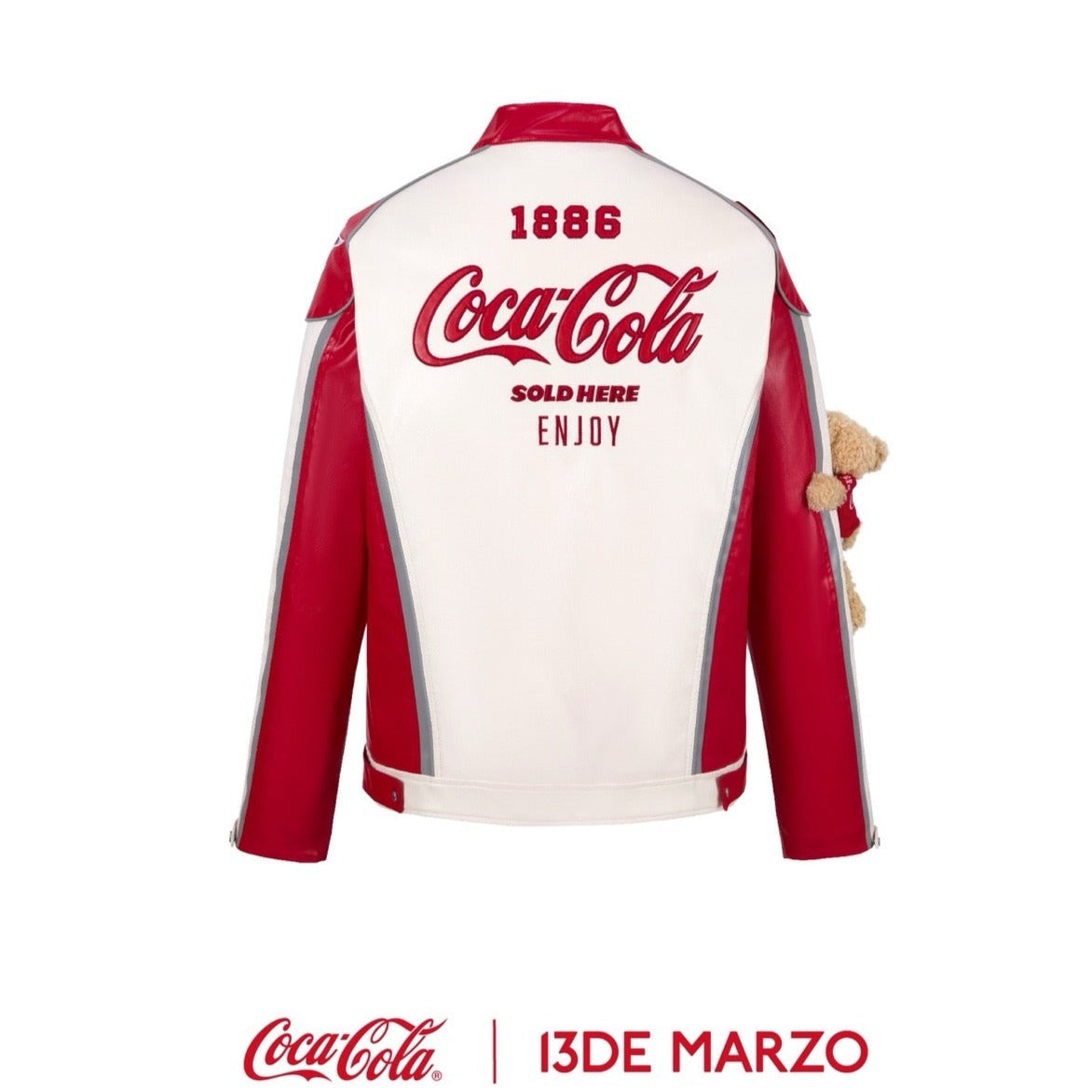 13DE MARZO x Coca-Cola Bear Racing Leather Jacket Racing Red