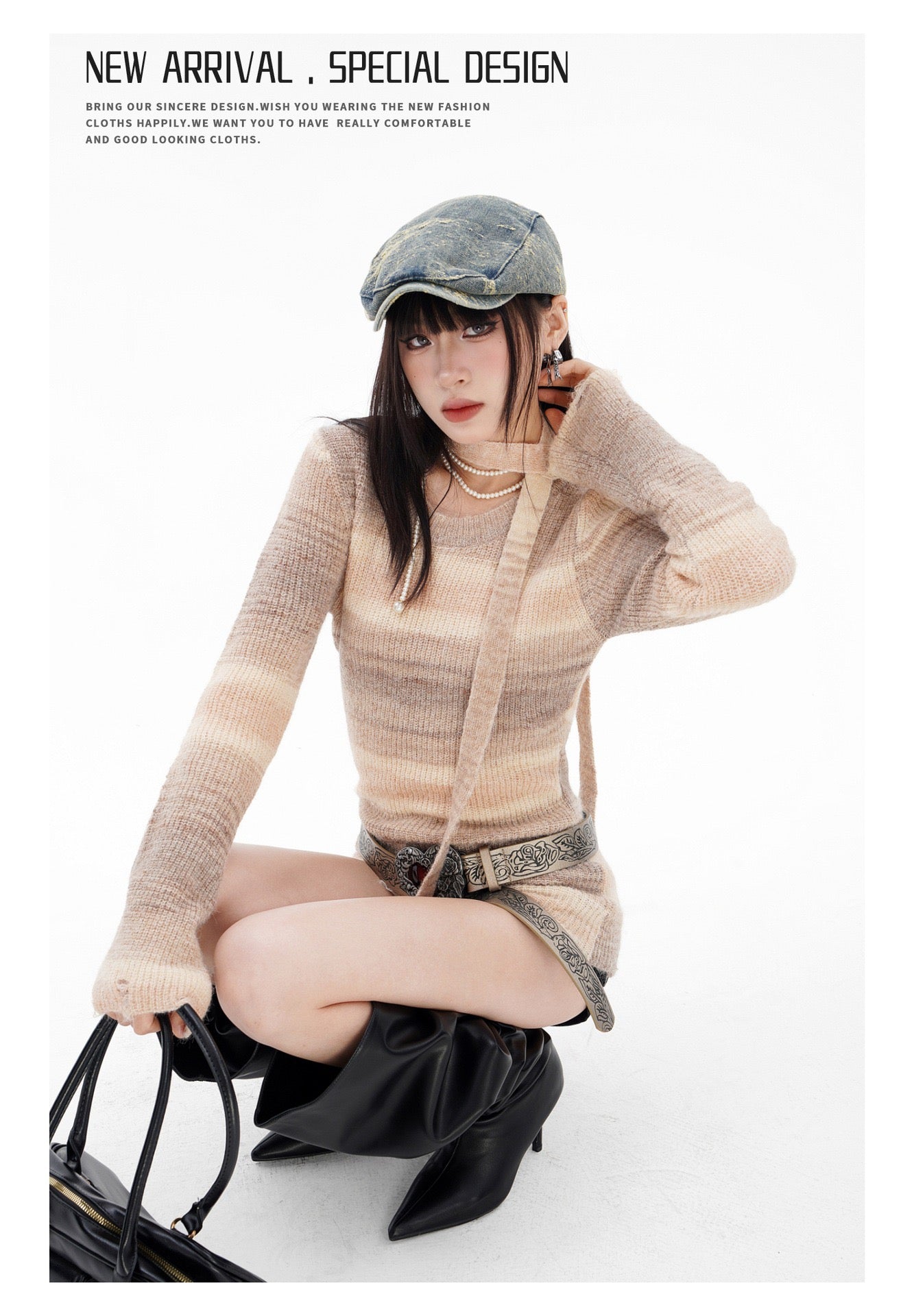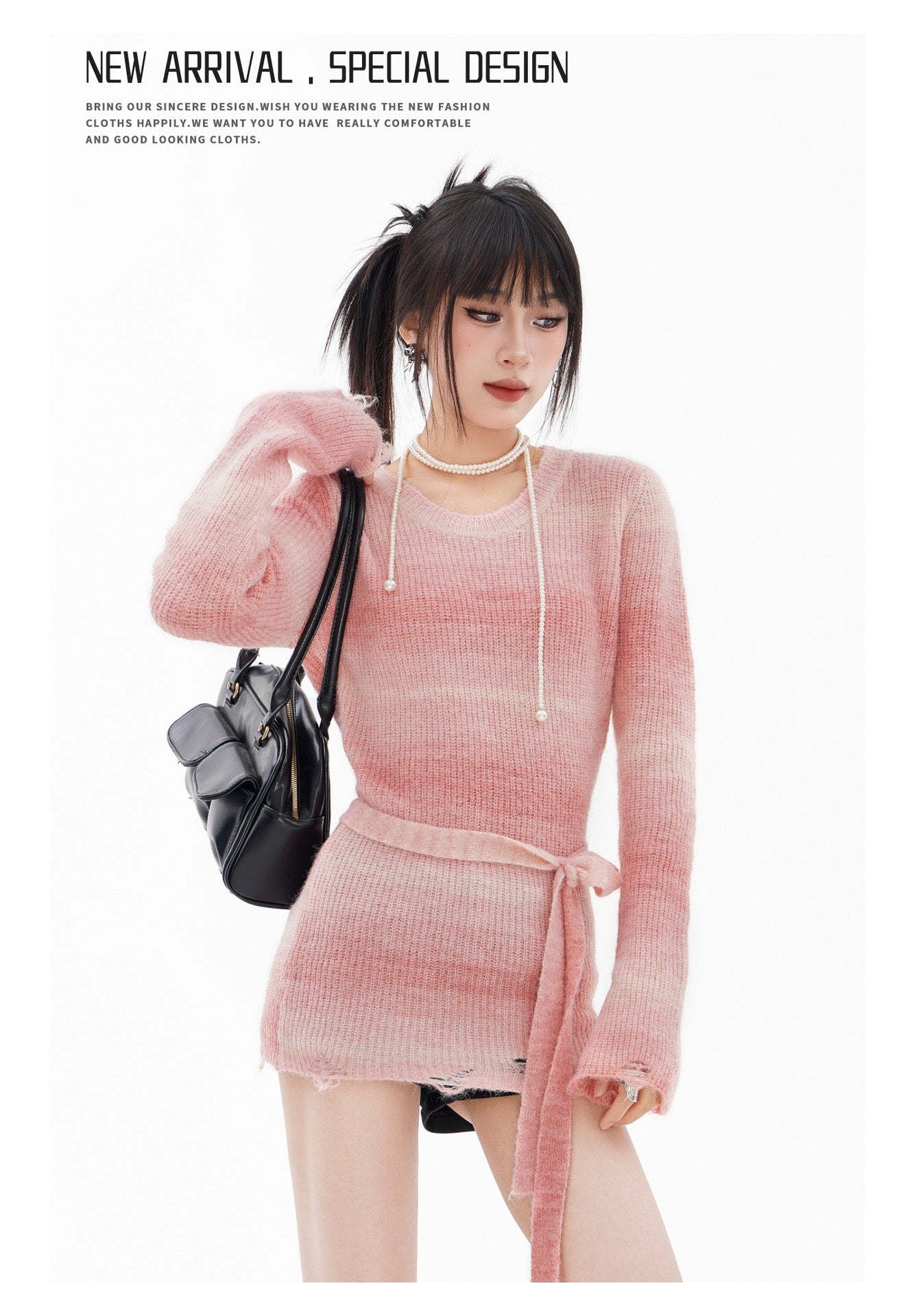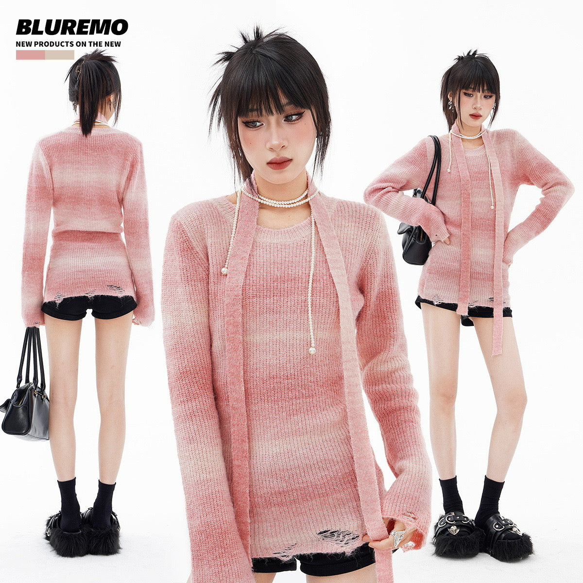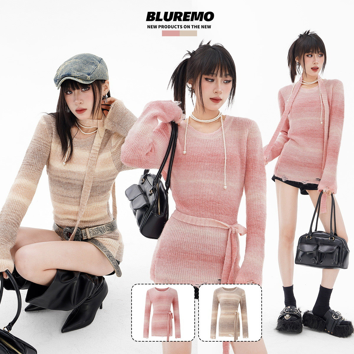 BLUREMO Gradient Versatile Waist Sweet Knitted Sweater