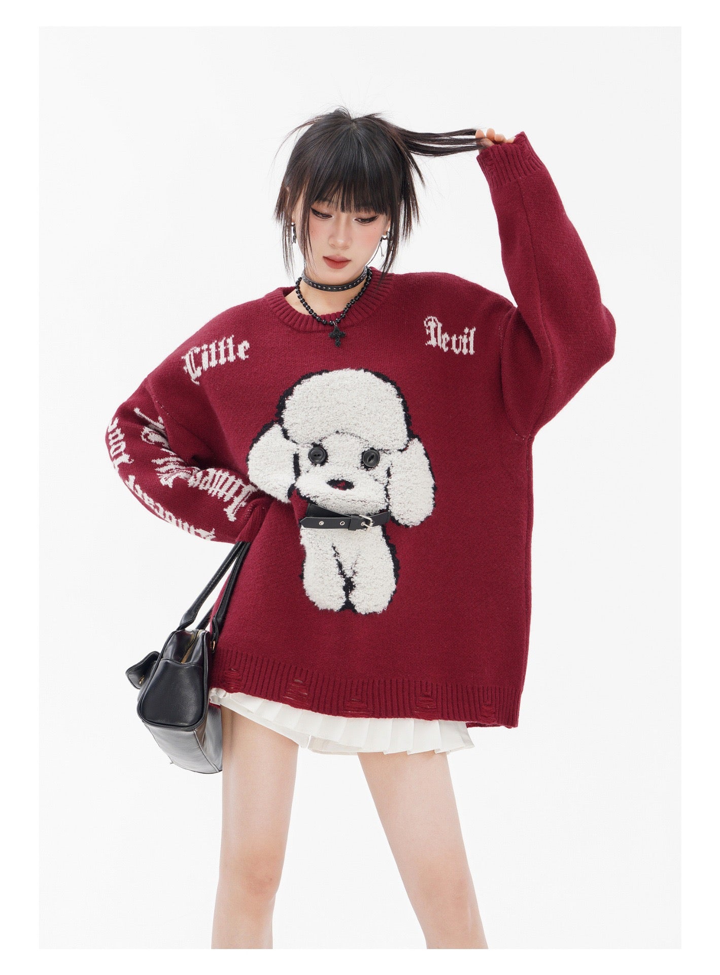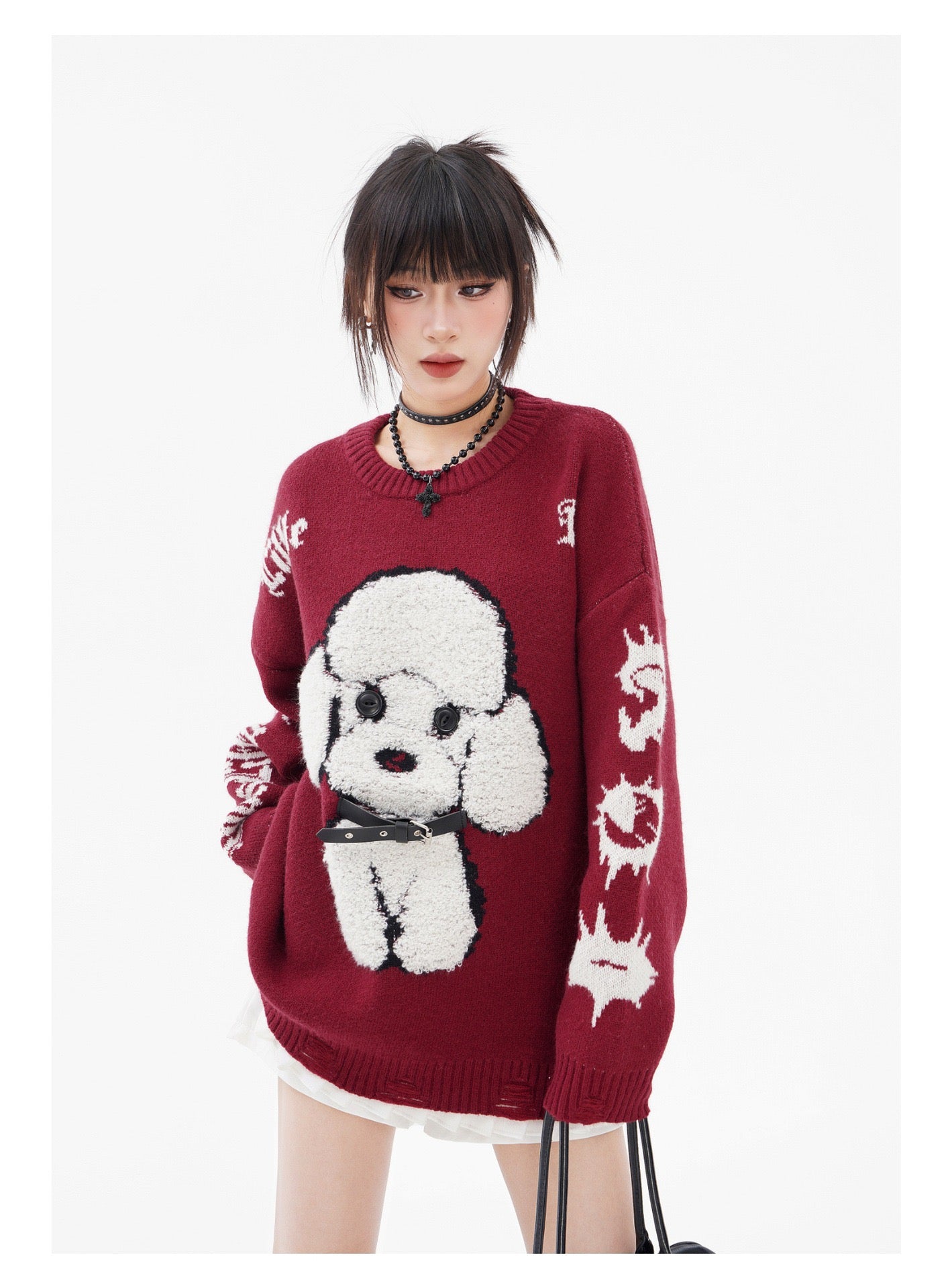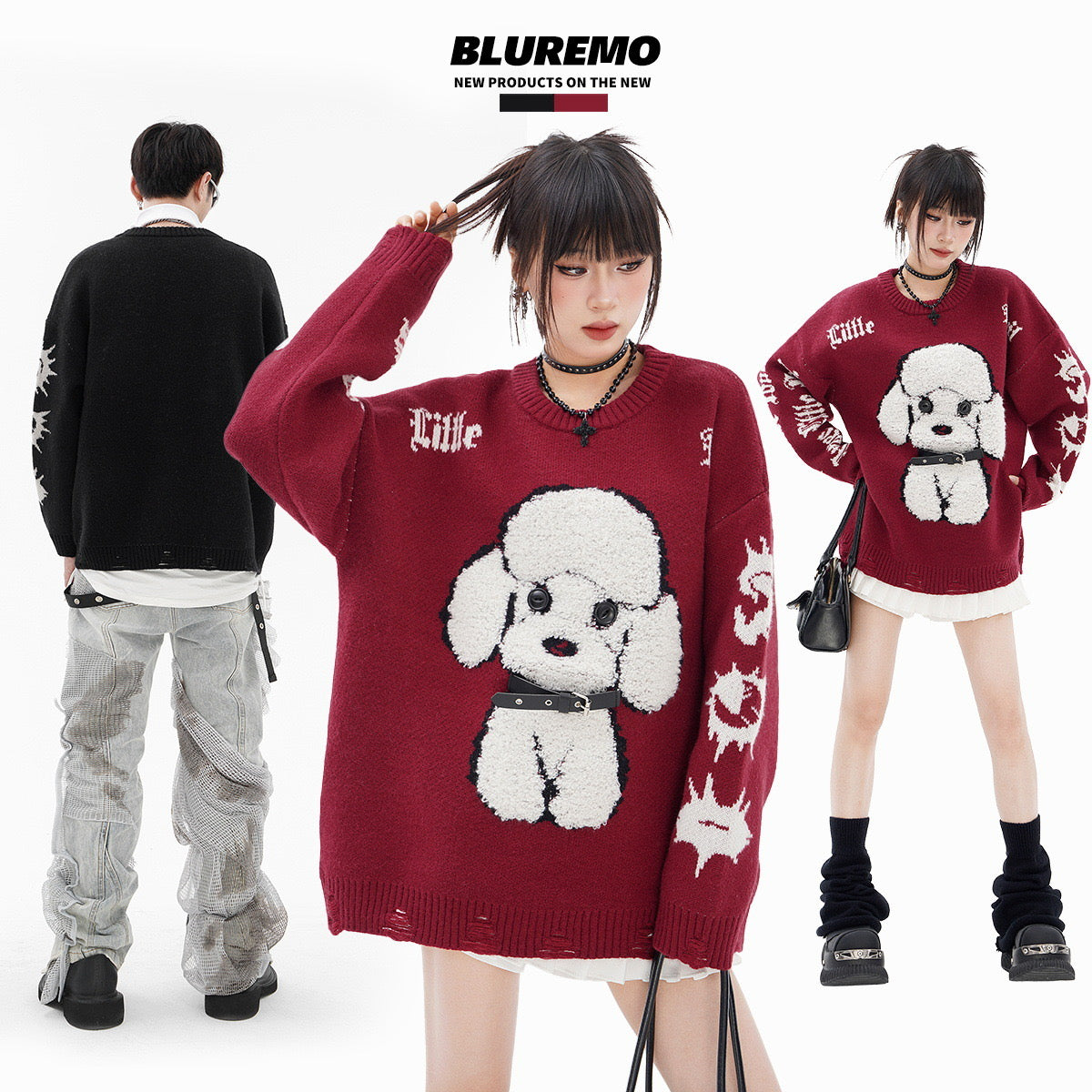 BLUREMO Puppy Towel Embroidered Resin Crewneck Sweater