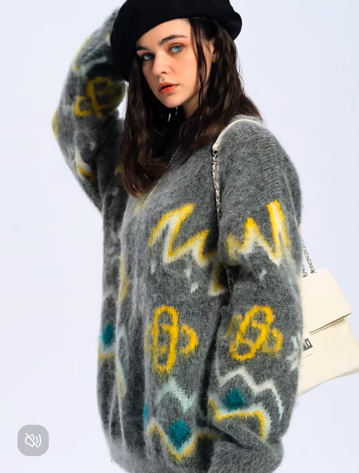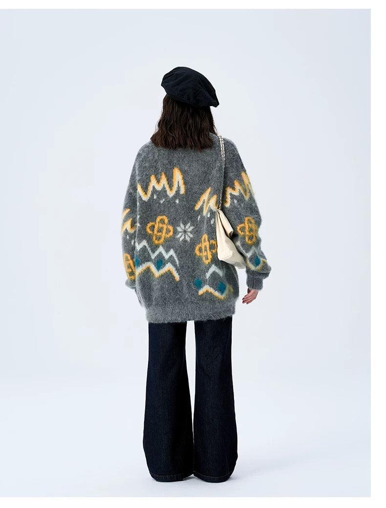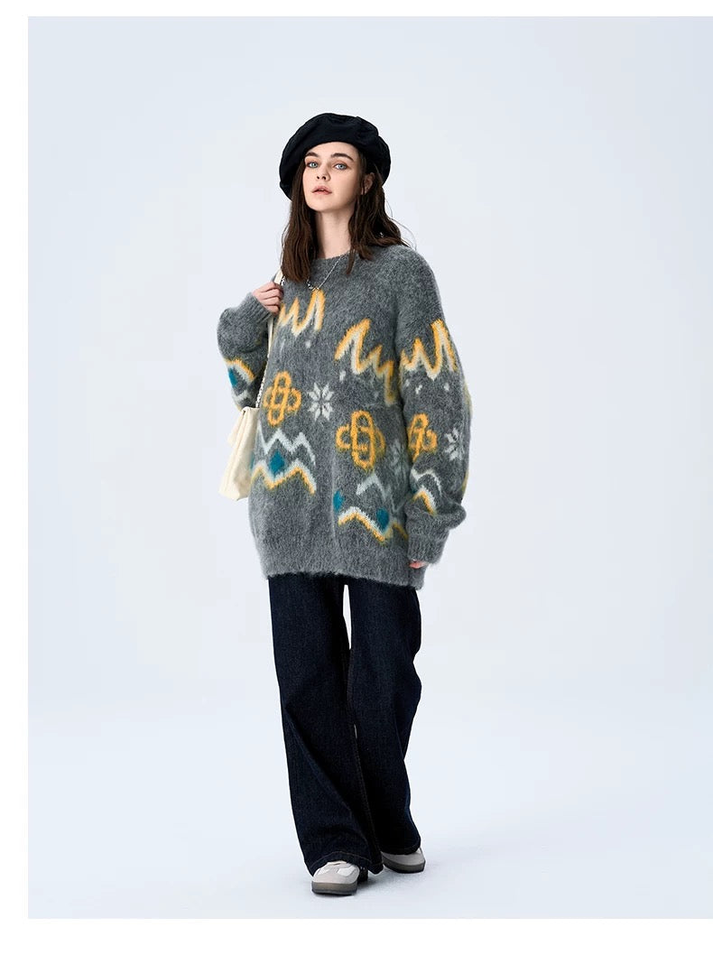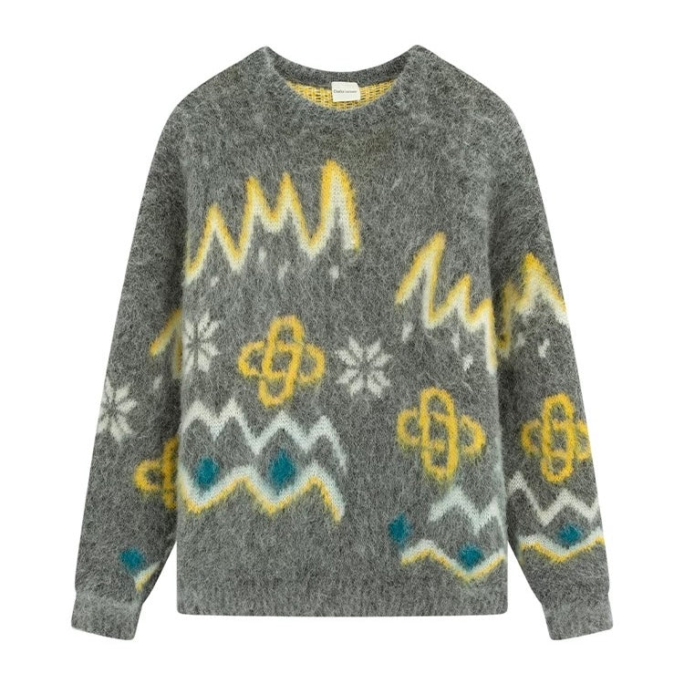 Charlie Luciano Geometric Pattern Crewneck Sweater Grey
