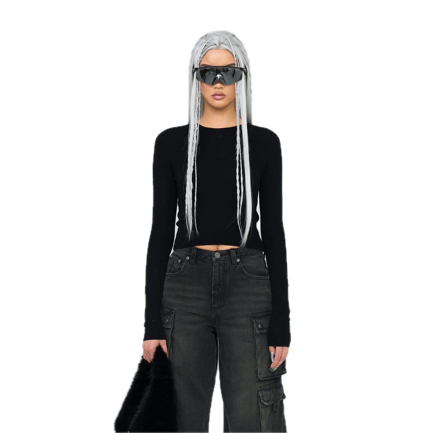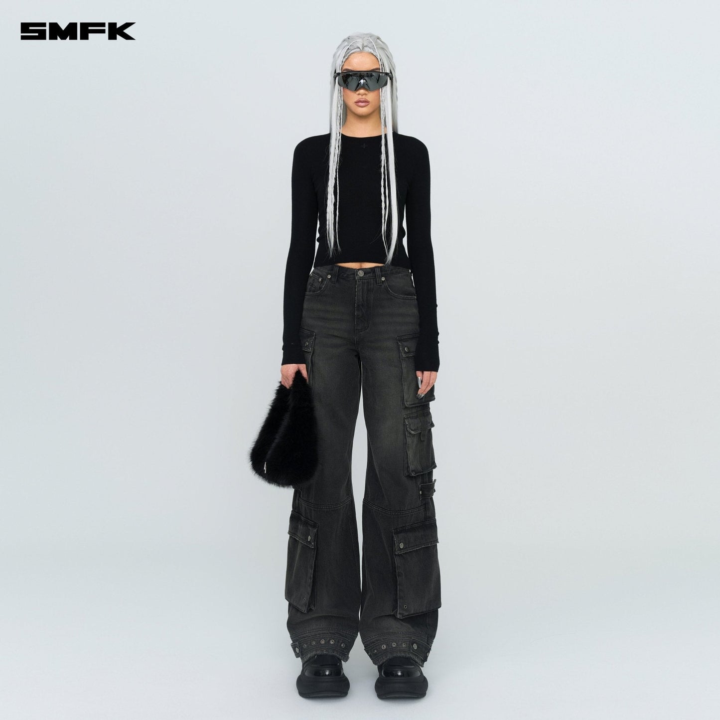 SMFK Compass Hug Knit Wool Top In Black