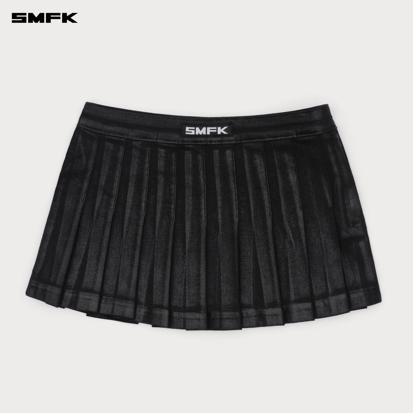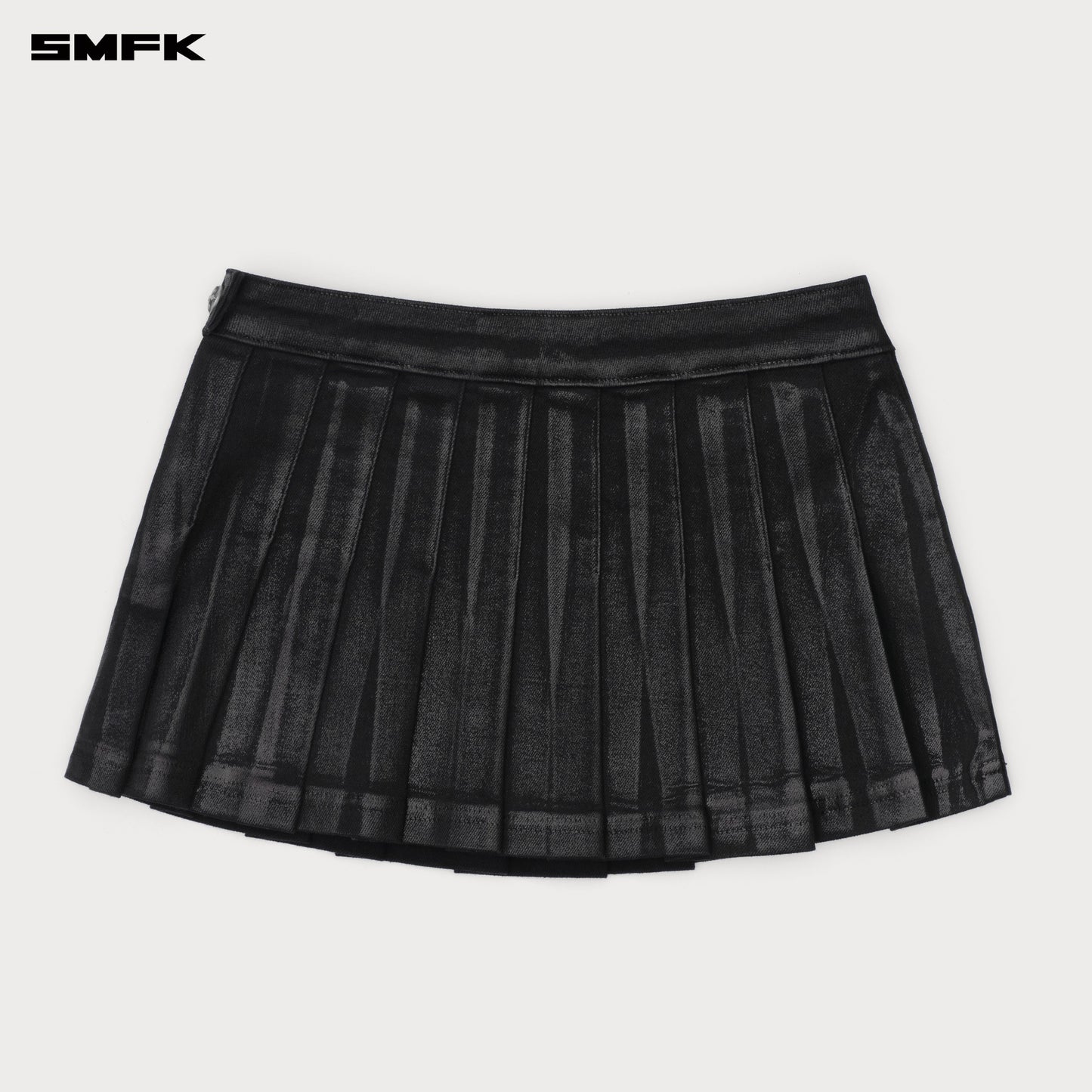 SMFK Compass Lightning Denim Pleated Skirt Black
