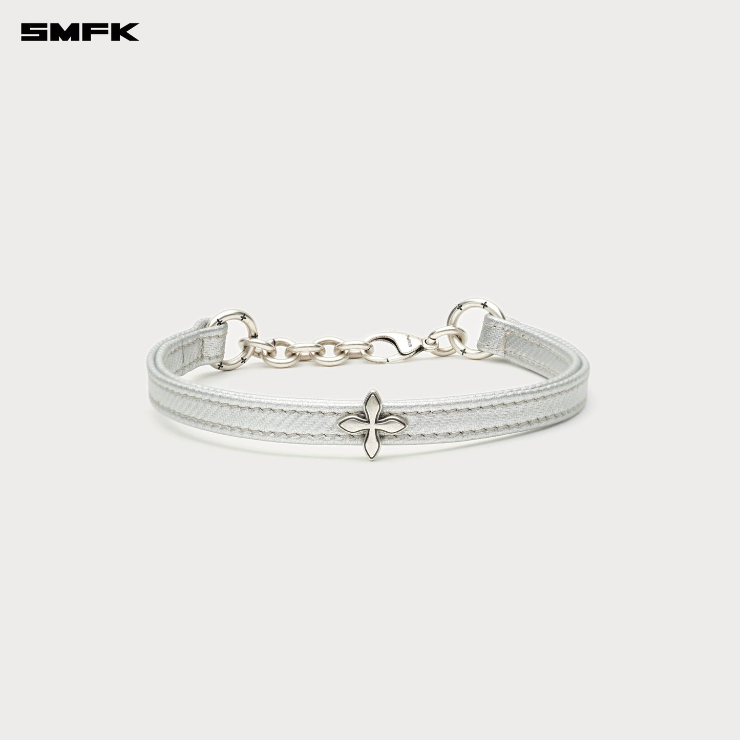 SMFK COMPASS RIVET Cross Badge Leather Choker in Silver
