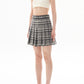 Concise-White Houndstooth Crew Neck Wool Short Coat and Skirt Set