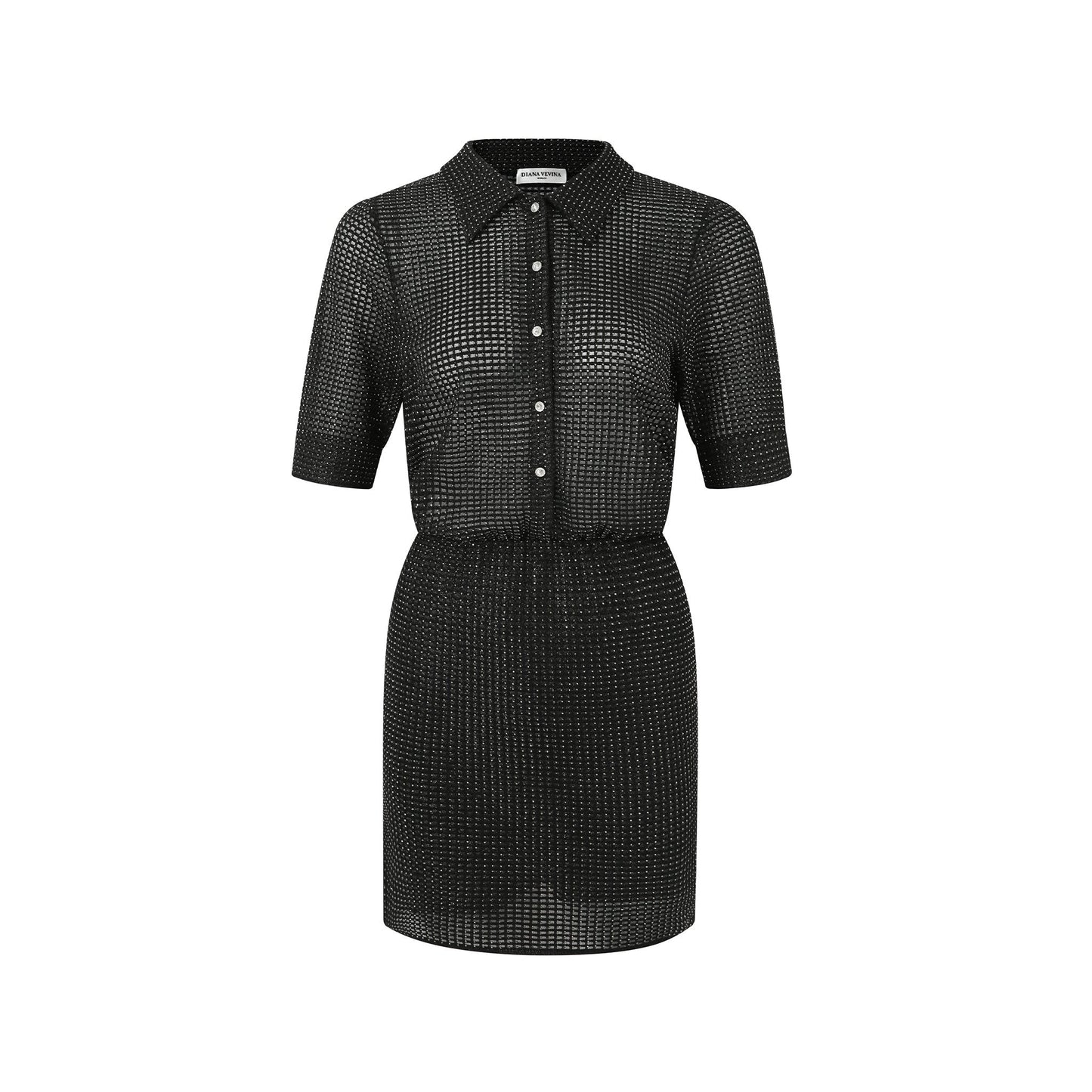 DIANA VEVINA Full diamonds and Silver Silk Polo Neck Knit Dress