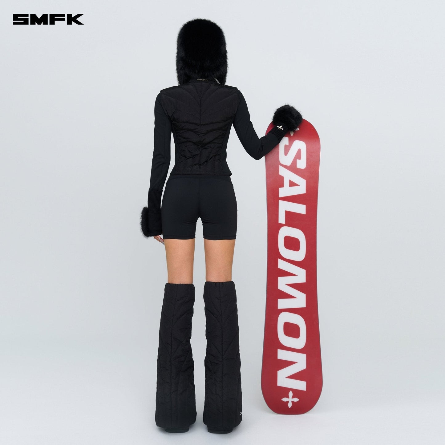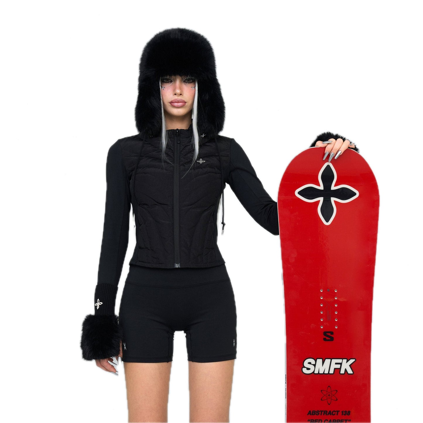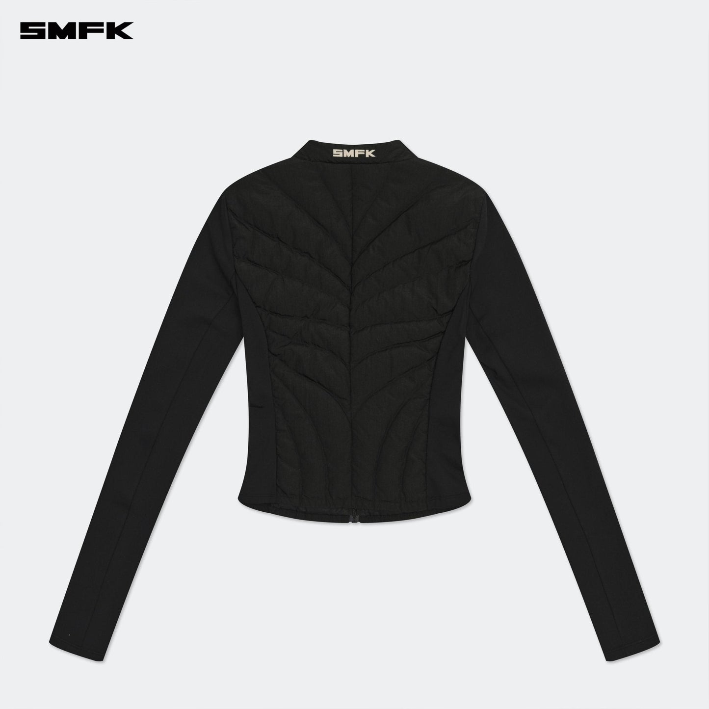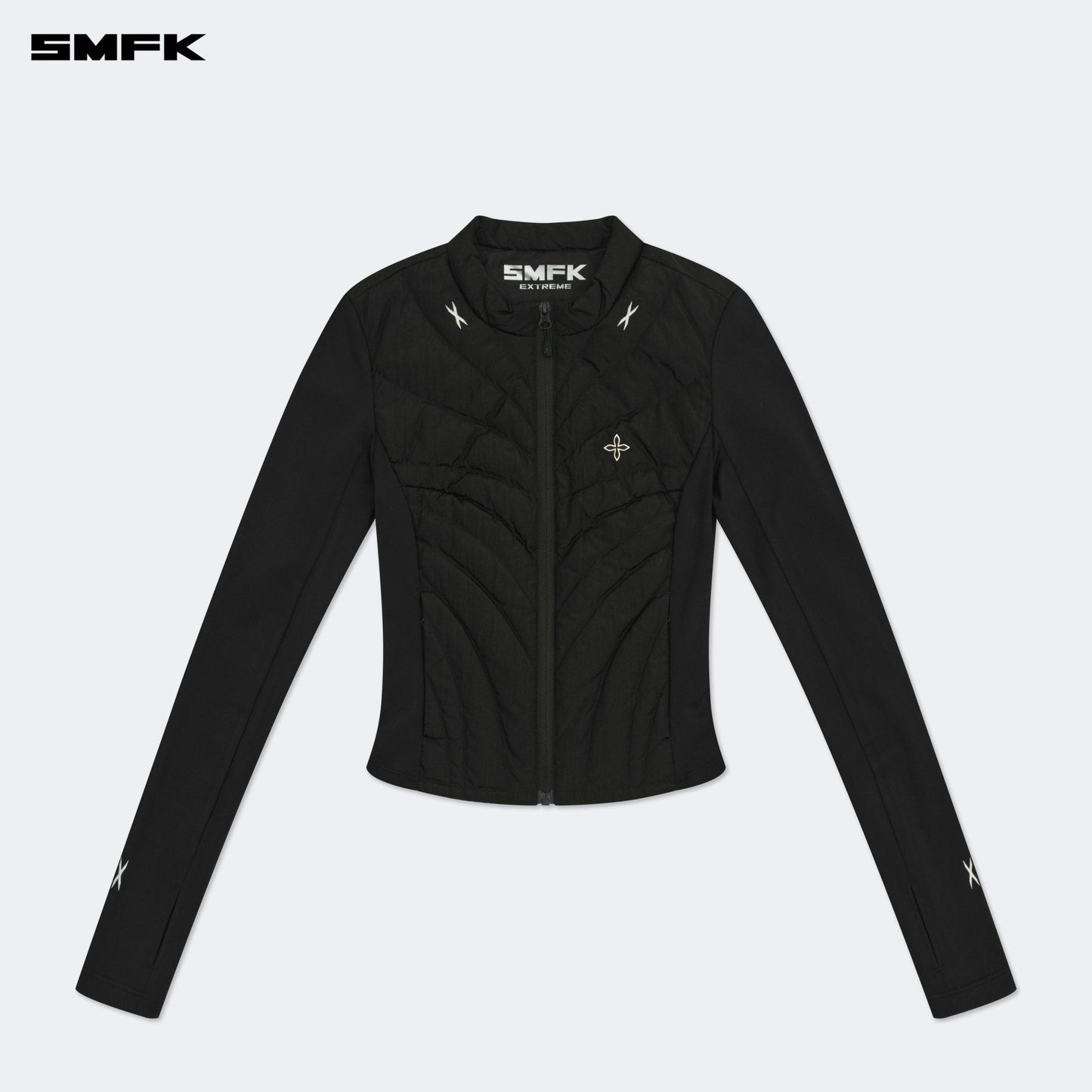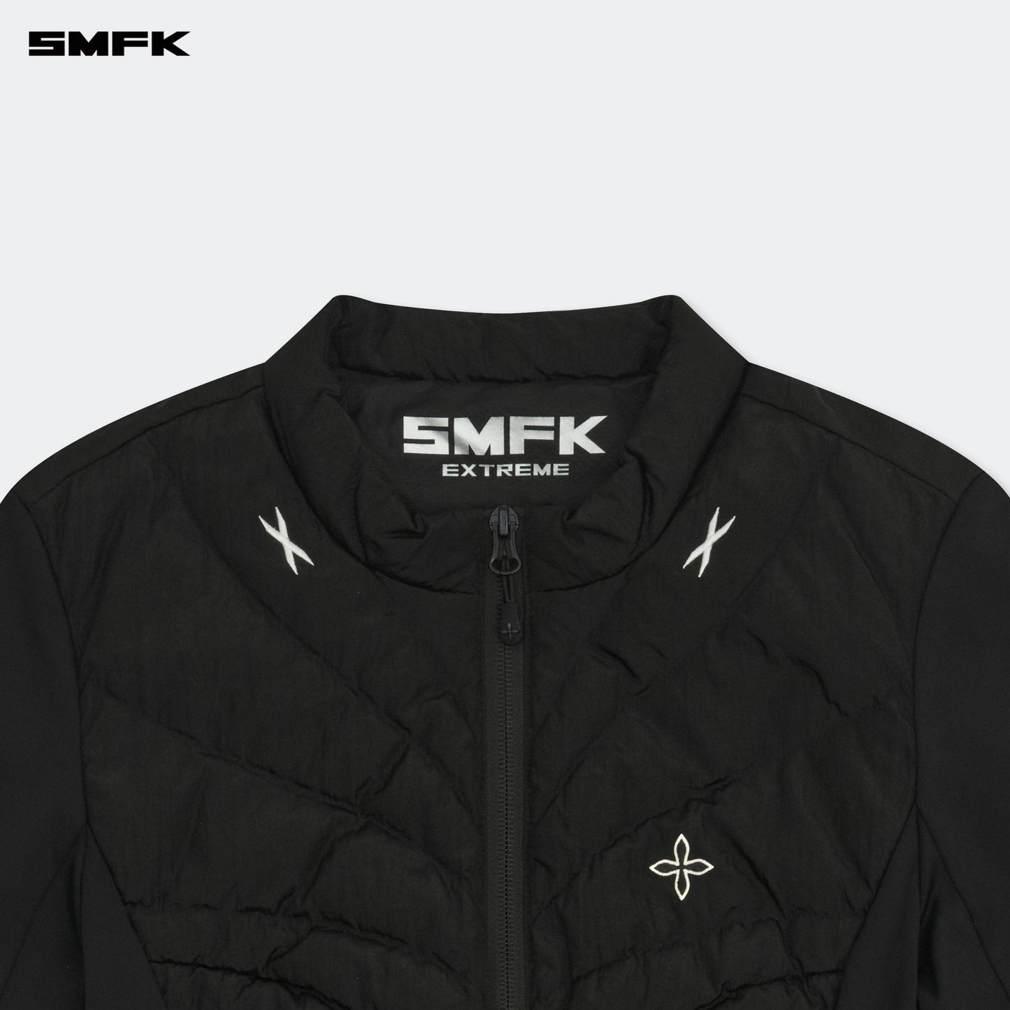 - Design: SMFK's newly designed sports splicing down jacket in 2024 is designed based on the human body structure and SMFK's Wave streamlines. The new whole body is outlined with down quilting, allowing down to fill the entire body structure, giving it a more artistic sculptural feel; the sleeves are spliced ​​with constant-temperature high-elastic sharkskin. It protects the core temperature of the torso while enhancing indoor and outdoor sports performance. It can also be paired with an outdoor winter jacket.