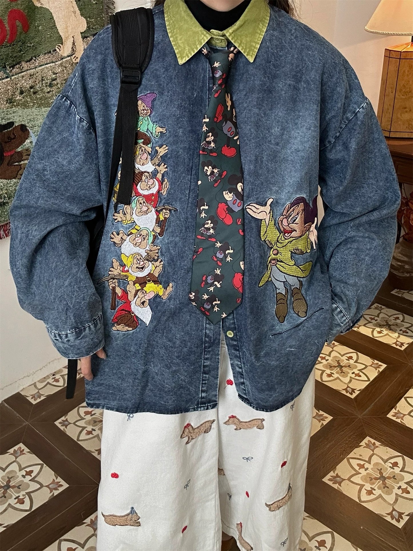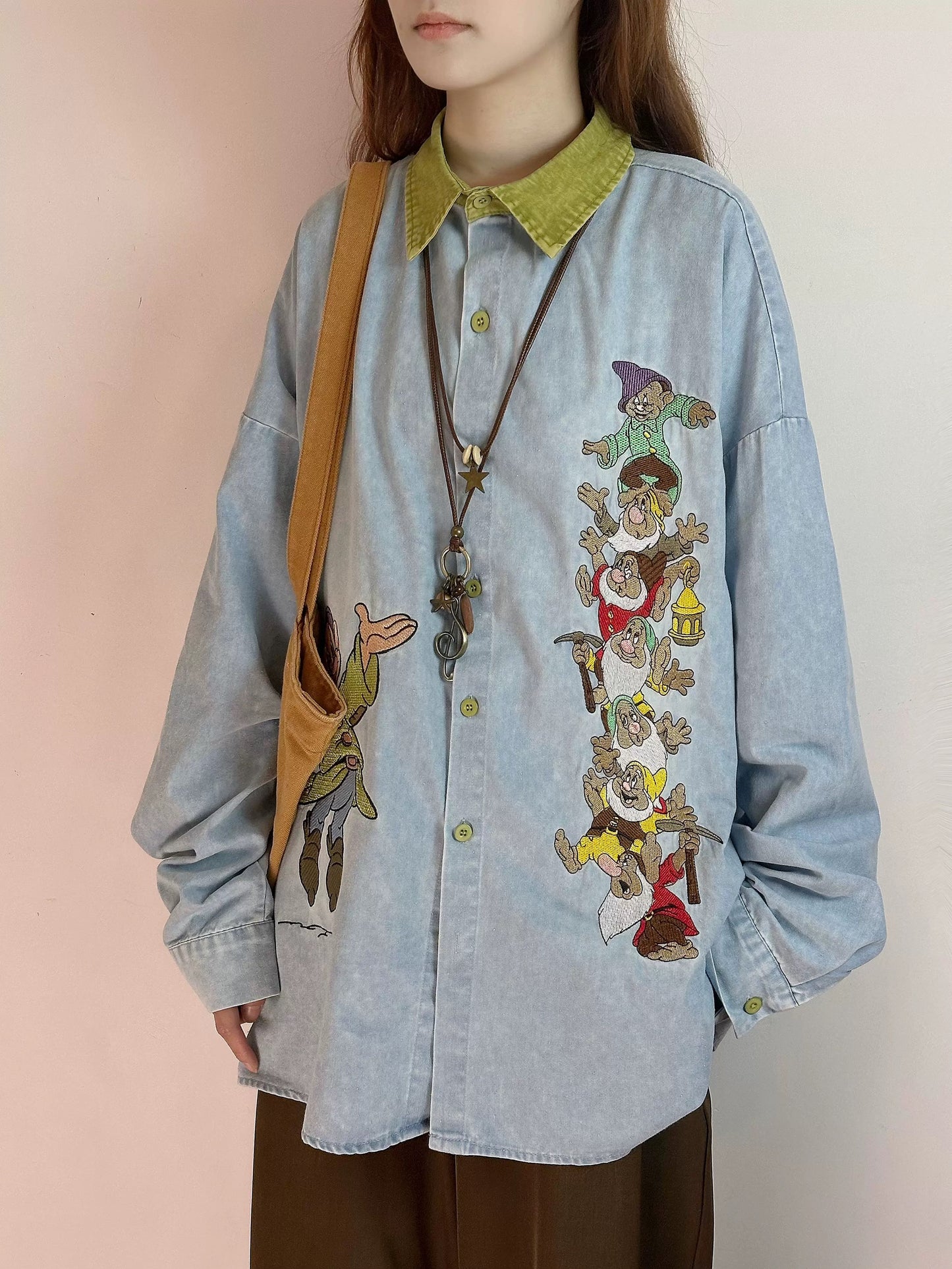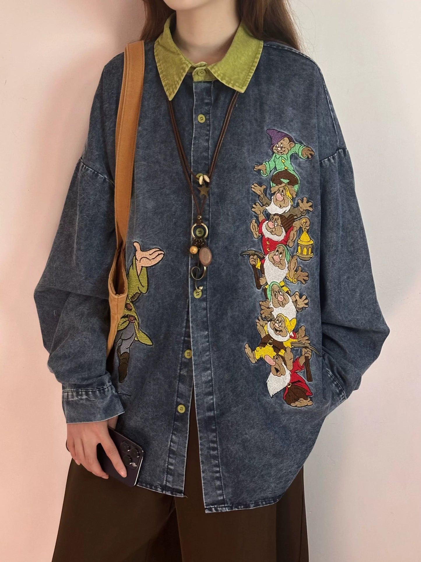 ✦FX✦ Dwarf Embroidered Denim Oversized Shirt