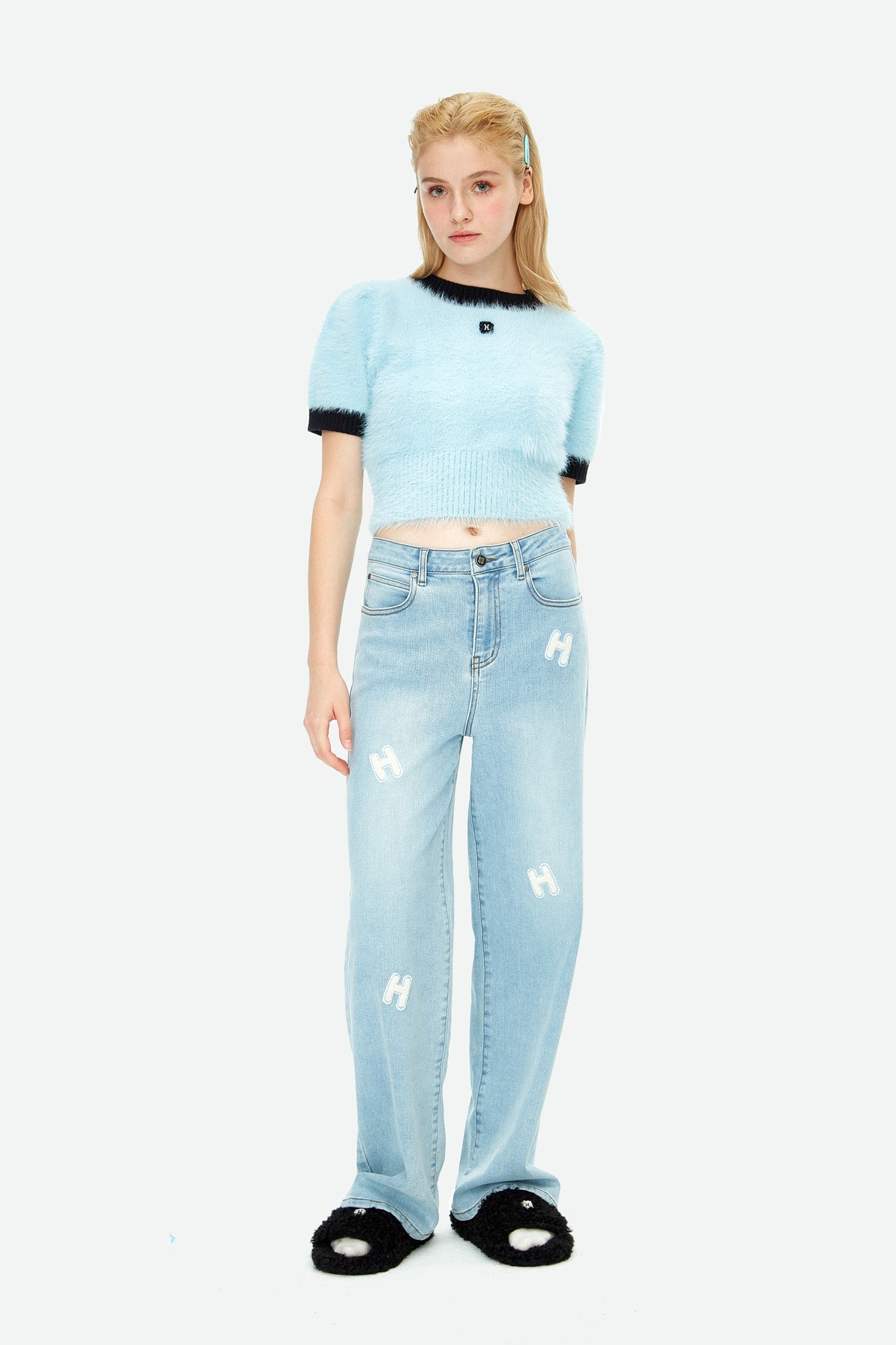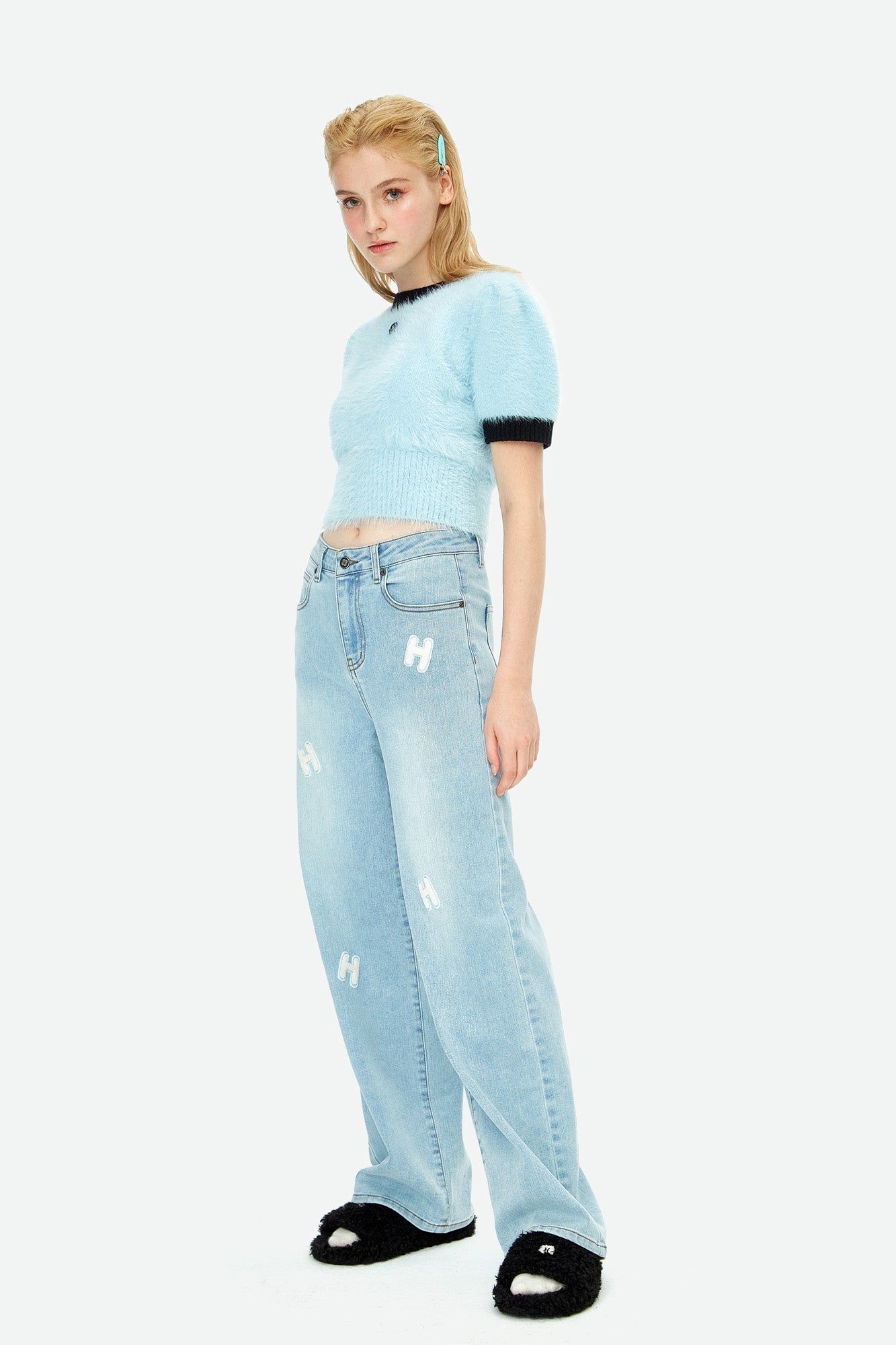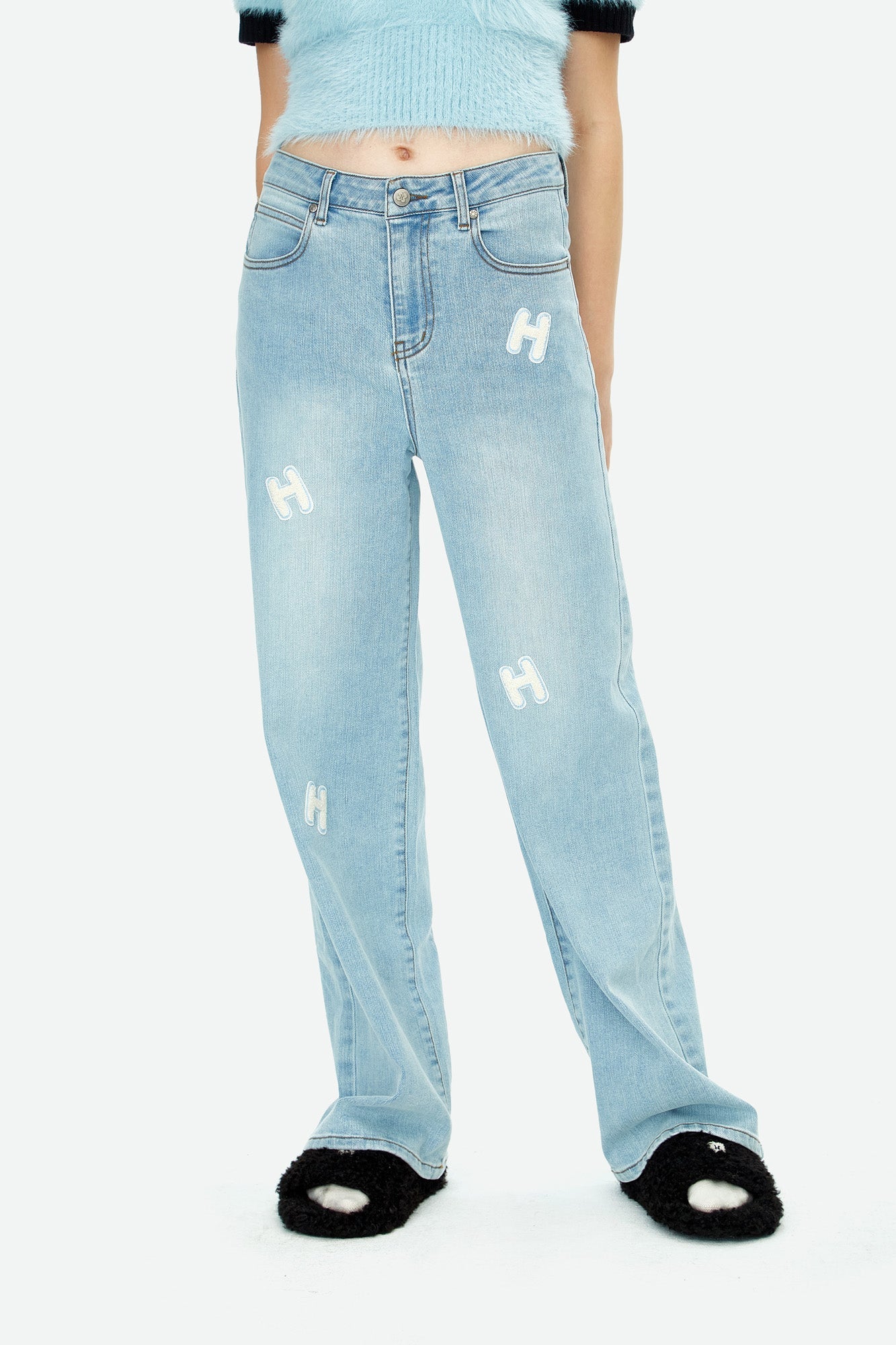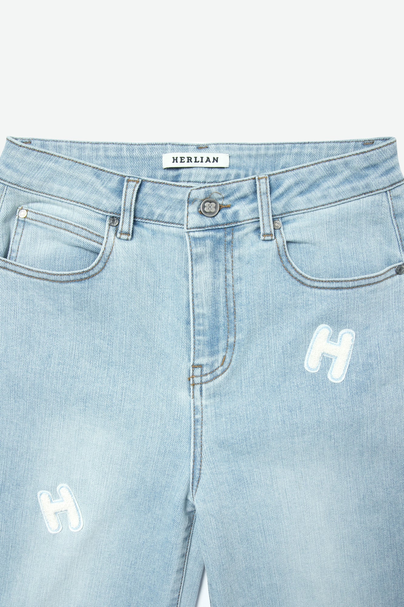 HERLIAN Labeled Logo Wide-Leg Jeans