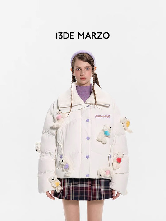 13DE MARZO Bear Heart Luminous Down Jacket Beige