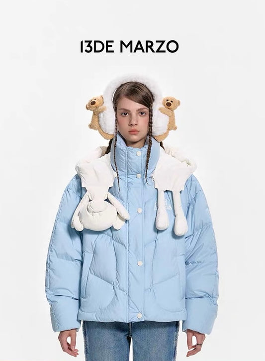 13DE MARZO Bear Hood Down Jacket Ice Water