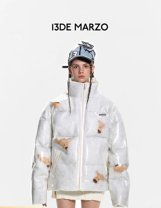 13DE MARZO Bear Icon Transparency Down Jacket White