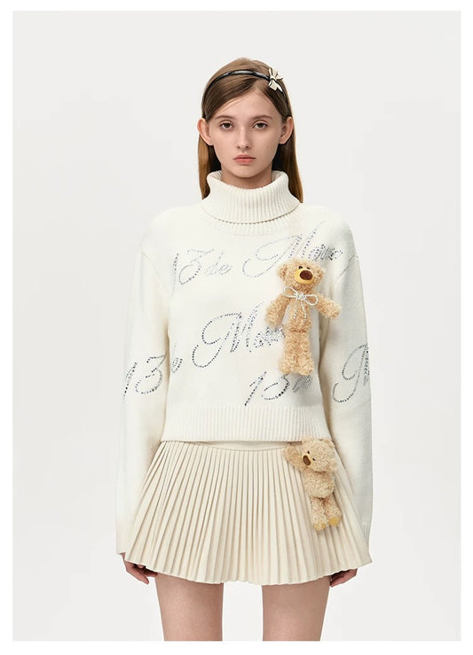 13DE MARZO Bear Rhinestone Logo Sweater White