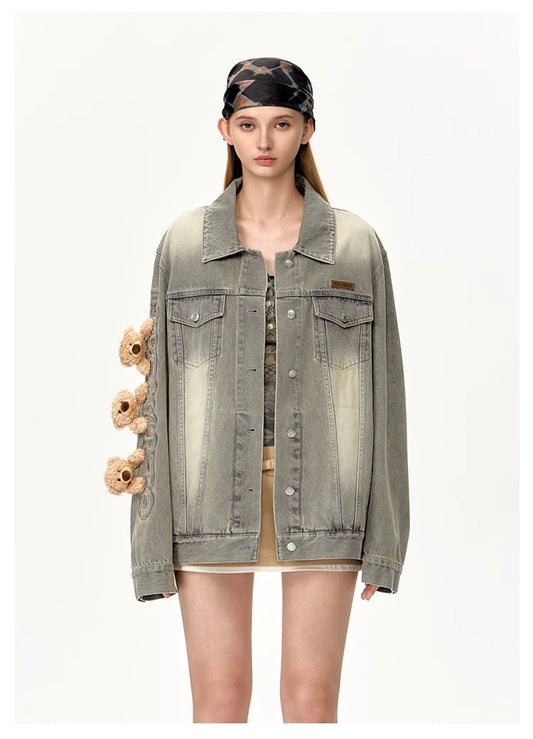 13DE MARZO Bear Queue Vintage Denim Jacket Grey