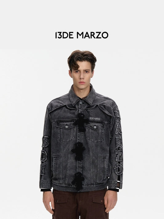 13DE MARZO Bear Side Hollow Denim Jacket Black