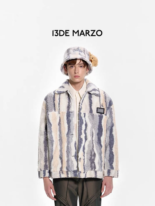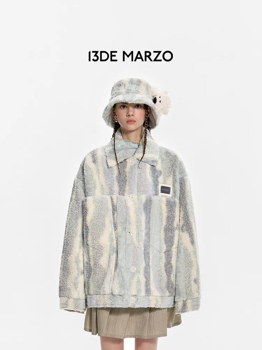 13DE MARZO Bear Stripe Fleece Coat Metal