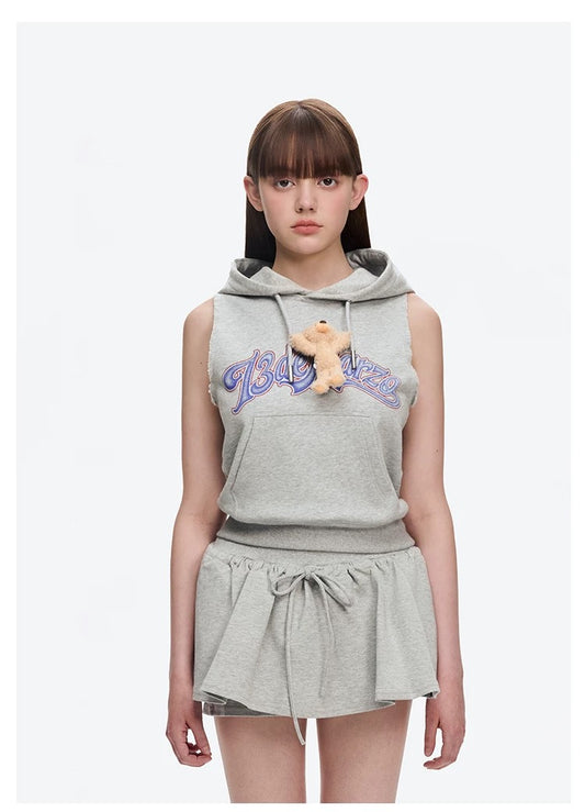 13DE MARZO Doozoo Printed Hooded Vest Grey