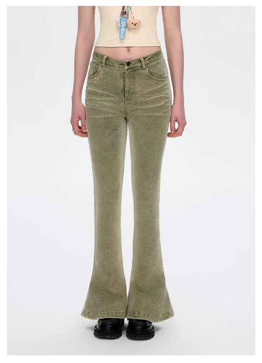 13DE MARZO Doozoo Split Hem Flared Jeans Green