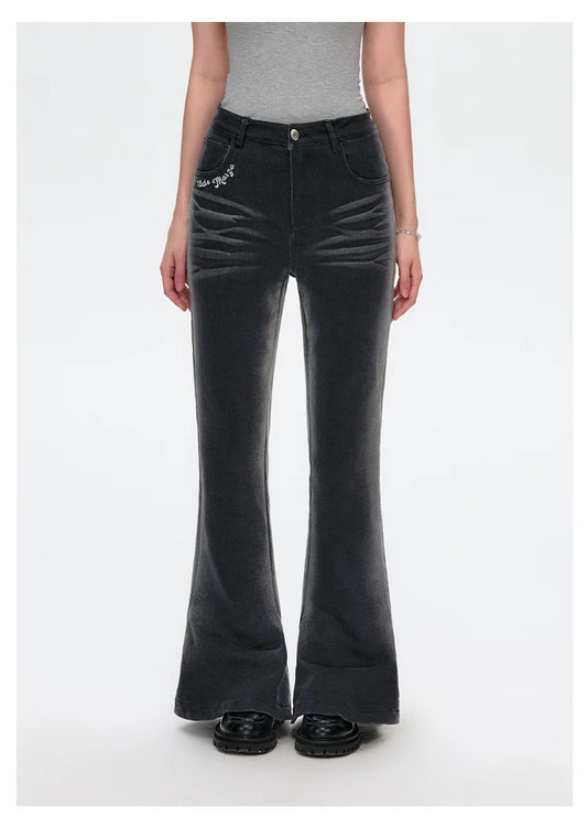 13DE MARZO Doozoo Split Hem Flared Jeans Black