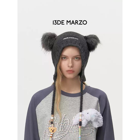 13DE MARZO Ear Bear Knit Beanie Dark Gray