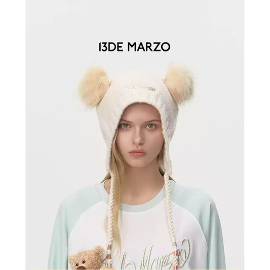13DE MARZO Ear Bear Knit Beanie Beige