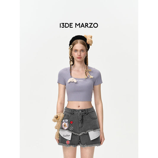 13DE MARZO Base Slim-Fit Crop Top Grey