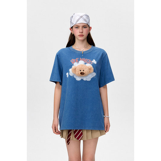 13DE MARZO Bear Anime Smog T-Shirt Dark Blue