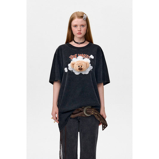 13DE MARZO Bear Anime Smog T-Shirt Black