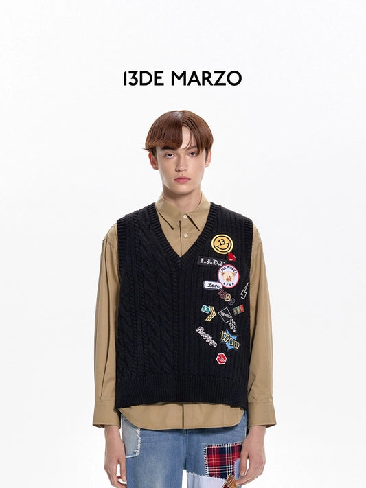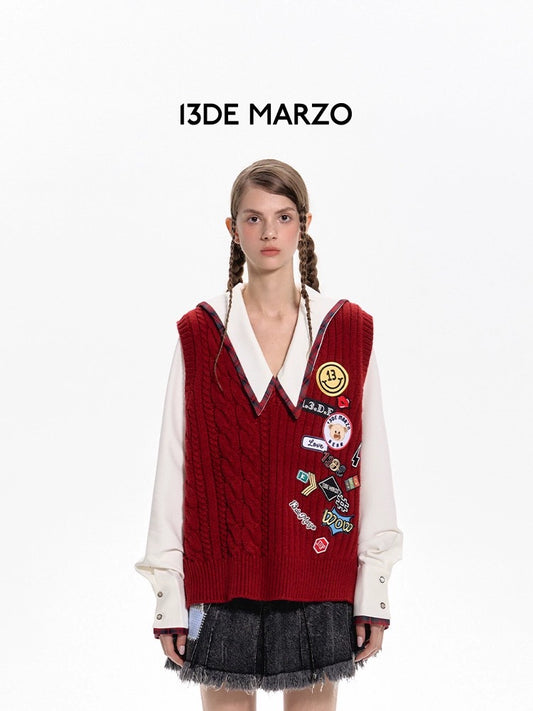 13DE MARZO Badges Knit Vest Barbados Cherry