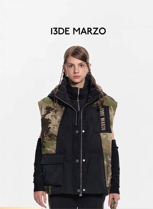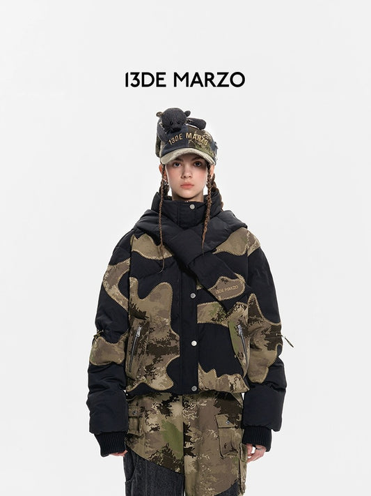 13DE MARZO Bear Camo Patch Down Jacket Black