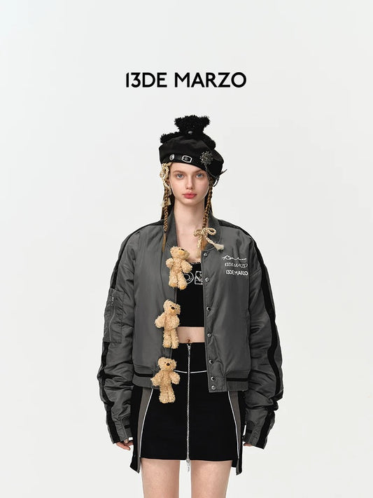 13DE MARZO Bear Cash Zipper Hoodie Grey