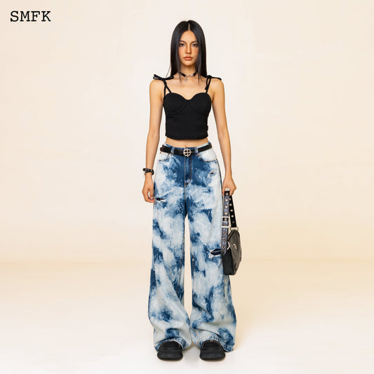 SMFK WildWorld Camouflage Loose Jeans Ocean Blue