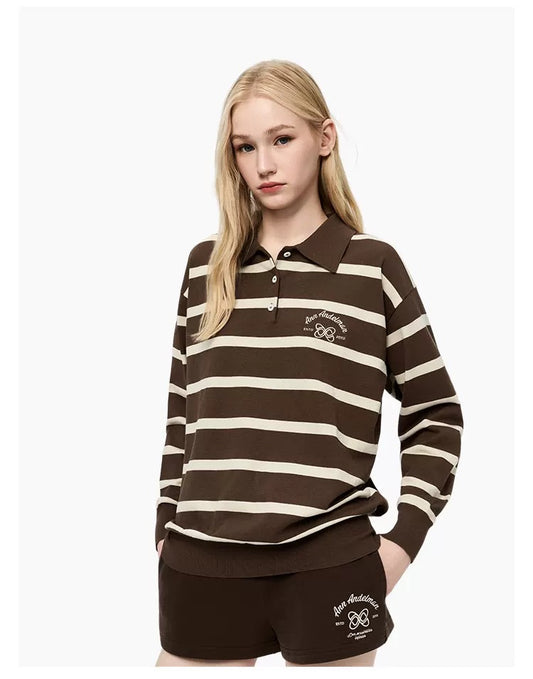 Ann Andelman Brown Striped Long-sleeved Polo Shirt