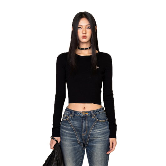 SMFK Compass Cross Classic Riding Knitted Top In Black