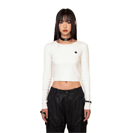 SMFK Compass Cross Classic Knitted Ultra Short Vest Top White