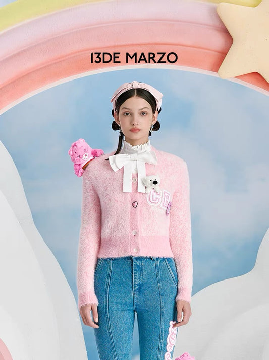 13DE MARZO x CARE BEARS Heart Button Mohair Cardigan Cameo Pink