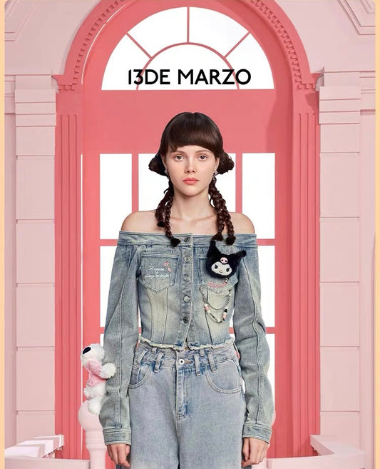13DE MARZO Kuromi Bear Off Shoulder Top Moonless Night