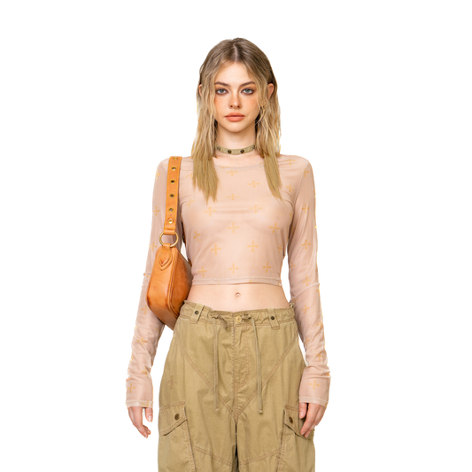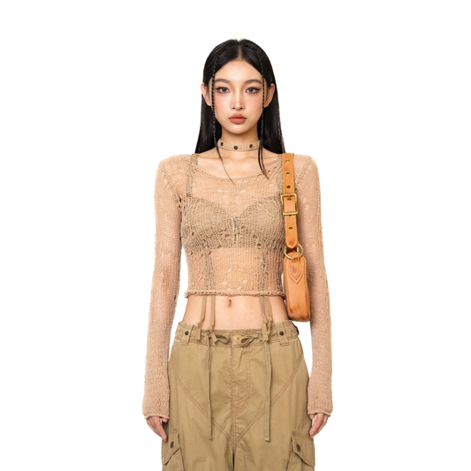 SMFK Garden Desert Mesh Tights Top In Khaki