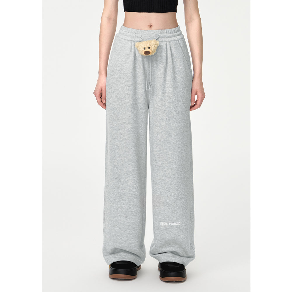 13DE MARZO Bear Laced Wide-Leg Casual Pants Gray