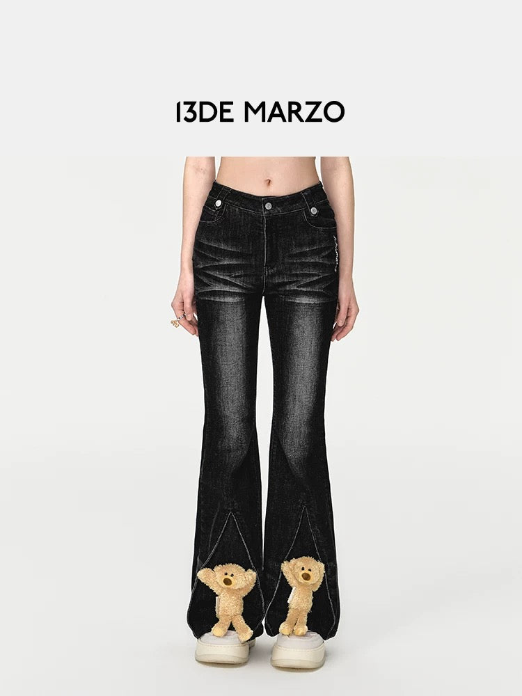 13DE MARZO Doozoo Bell-Bottoms Jeans Washed Black