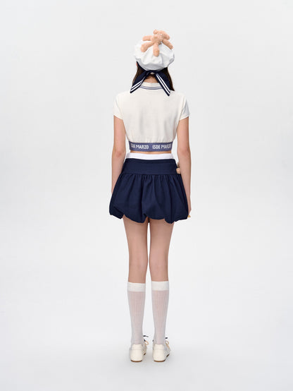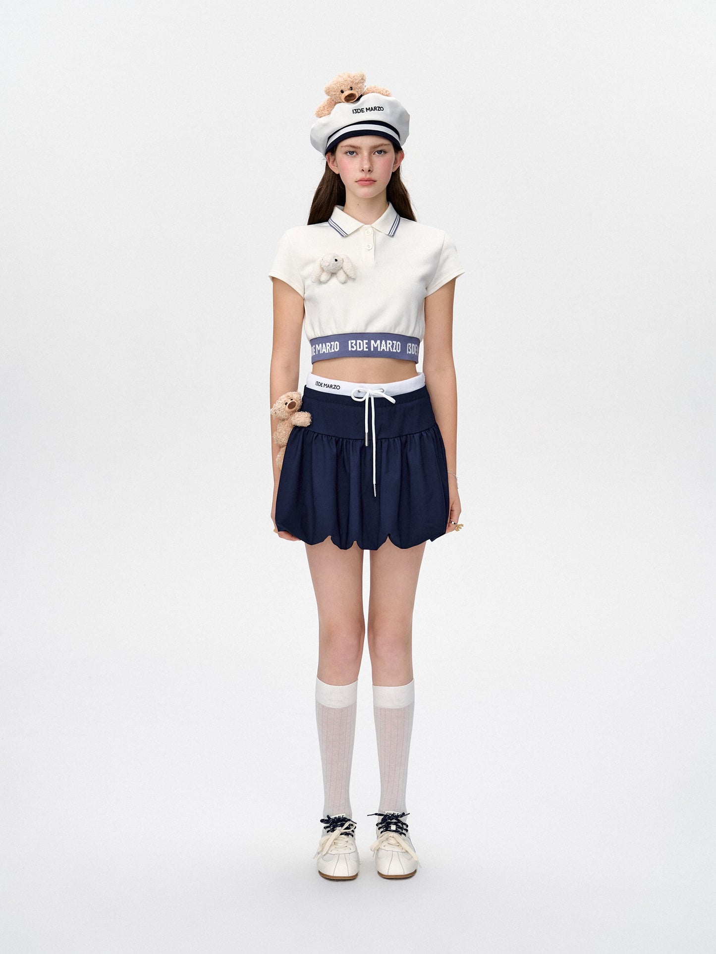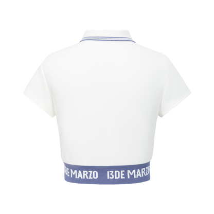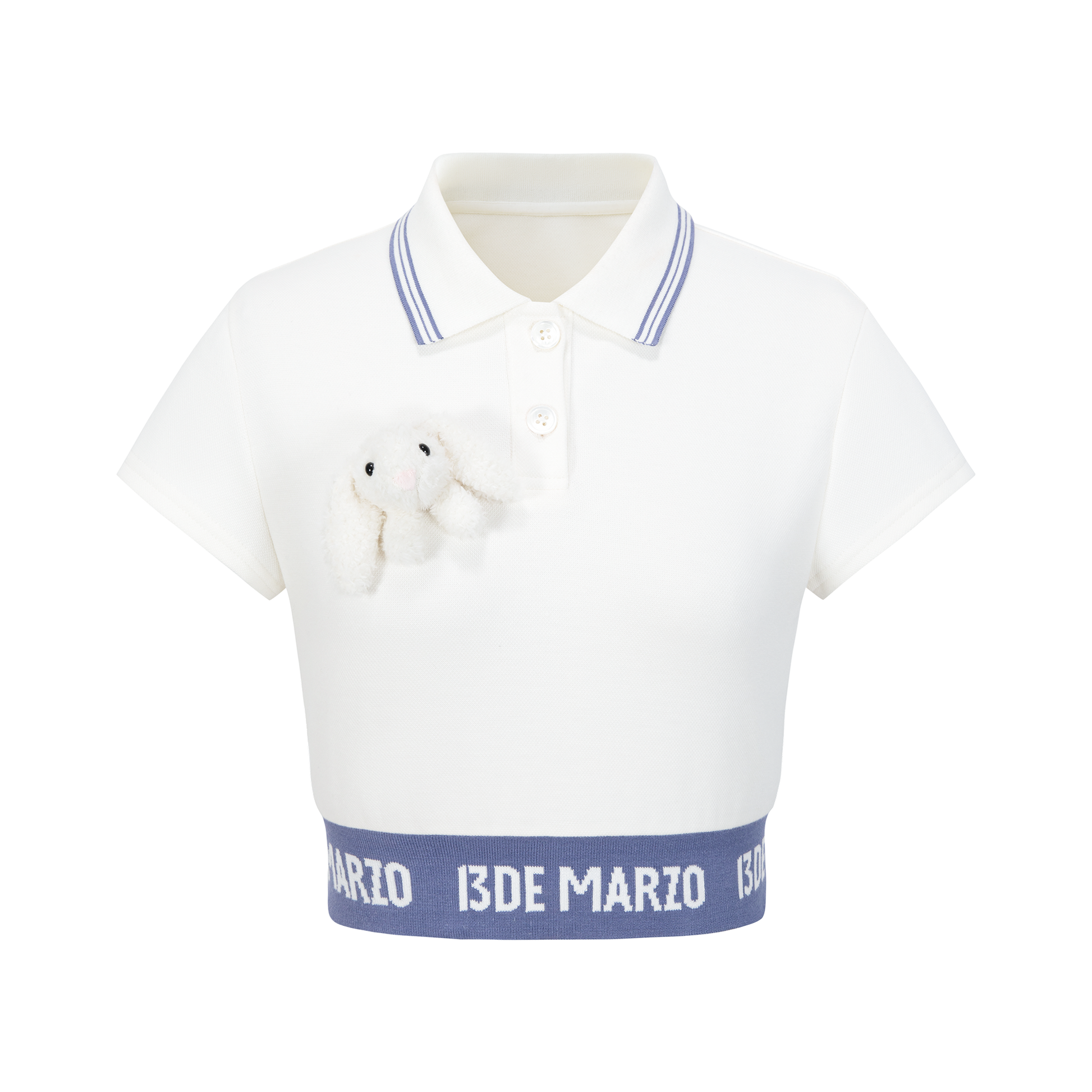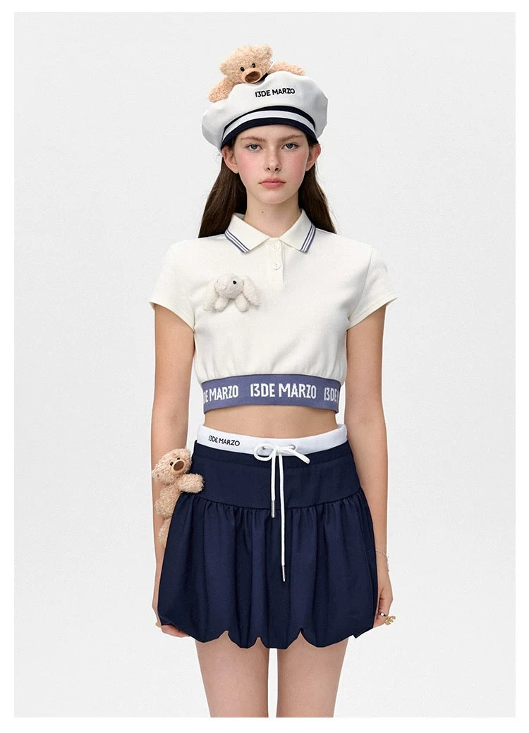 This cropped polo tee is the perfect blend of elegance and casual style. Designed to cinch the waist and highlight your silhouette, it features a soft knit collar for added comfort and refined style. The jacquard logo adds a touch of brand detail, while the plush bear pin on the chest is detachable—perfect for switching up your look. Made from textured and breathable piqué fabric, it keeps you cool and comfy during warmer days. Pair it with jeans, skirts, or shorts for a variety of effortless, stylish outfits.