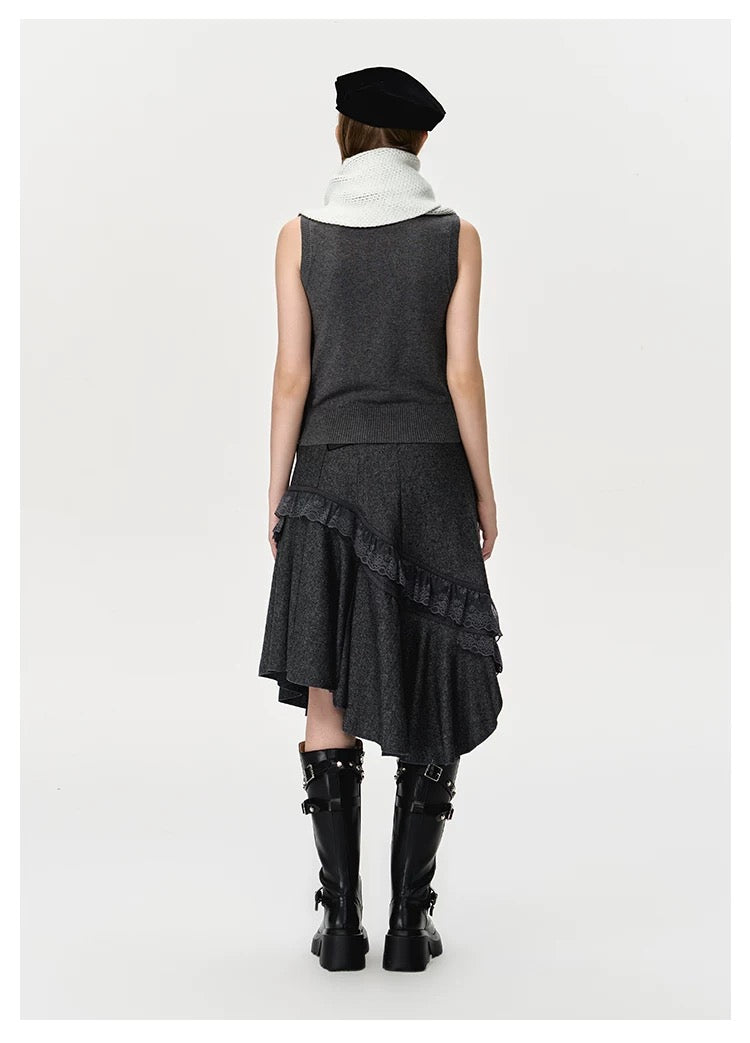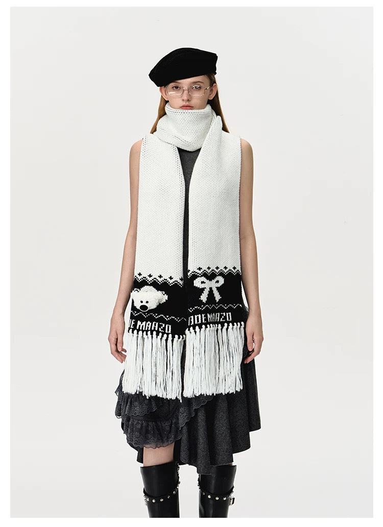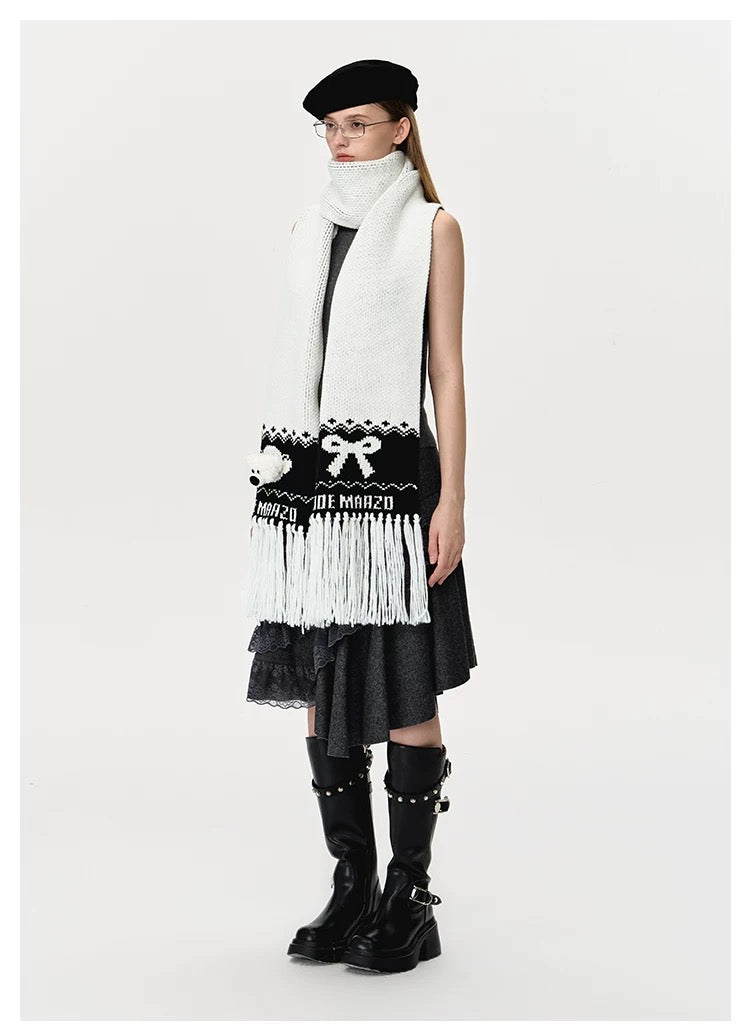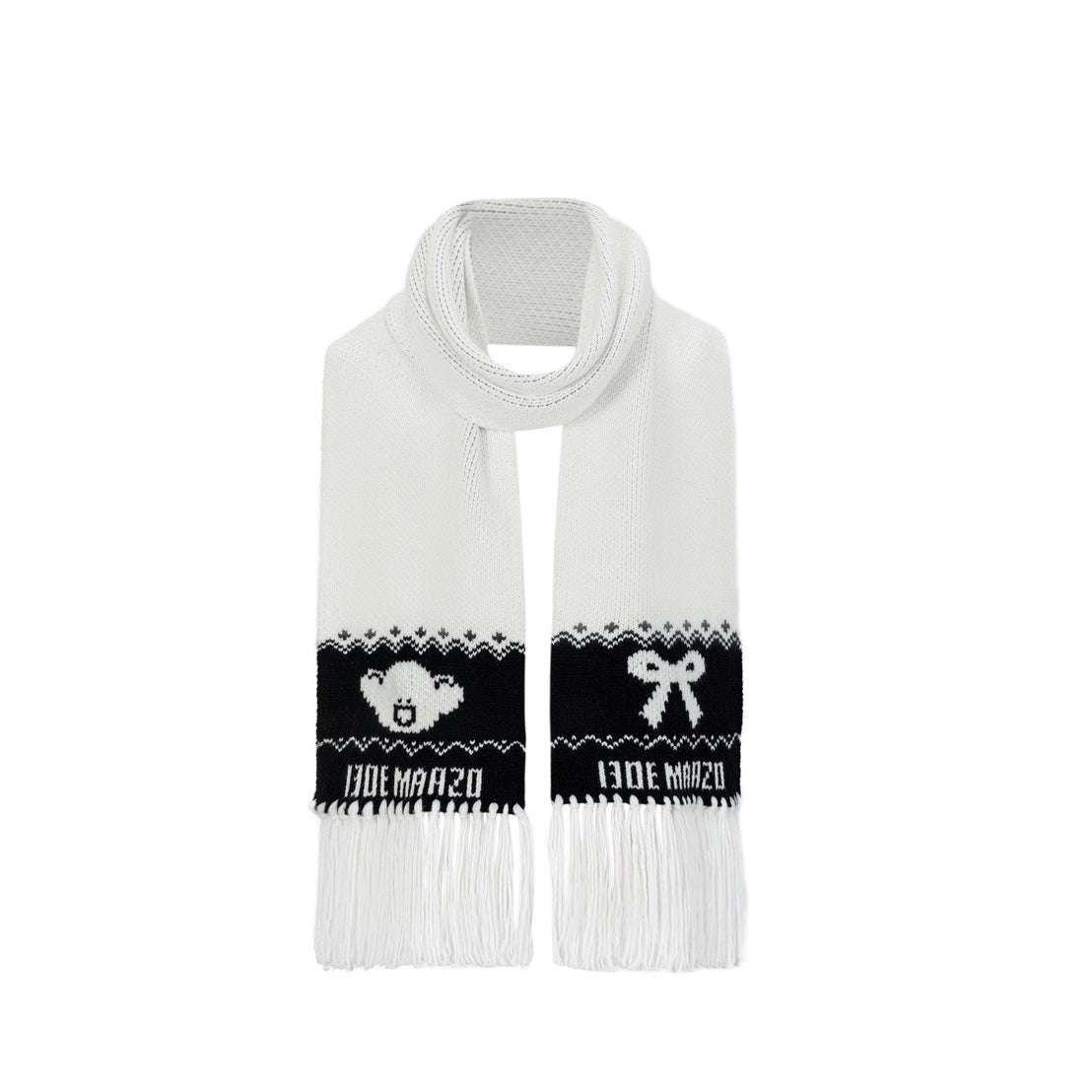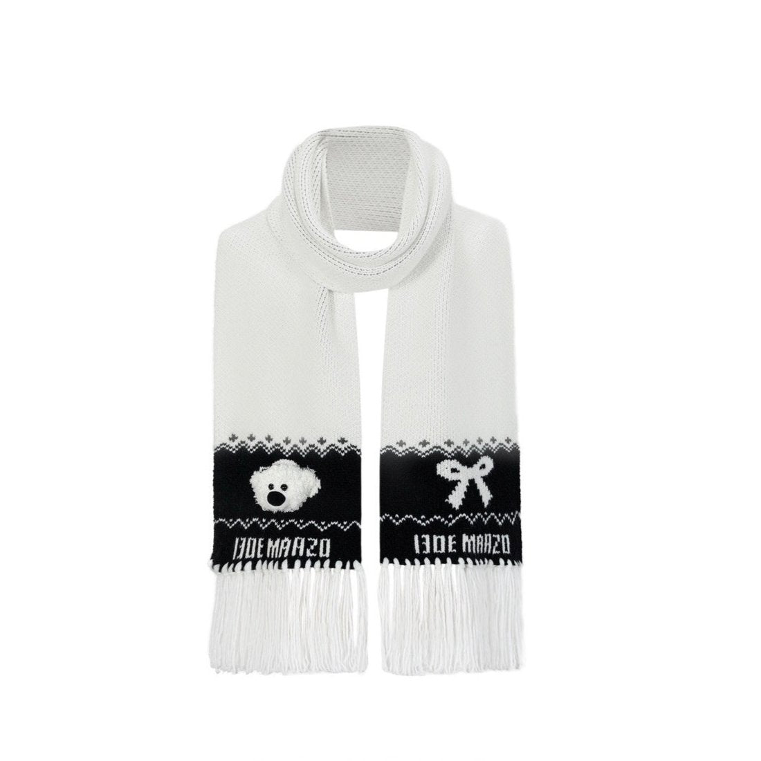 13DE MARZO Fair Isle Bear Knit Scarf White